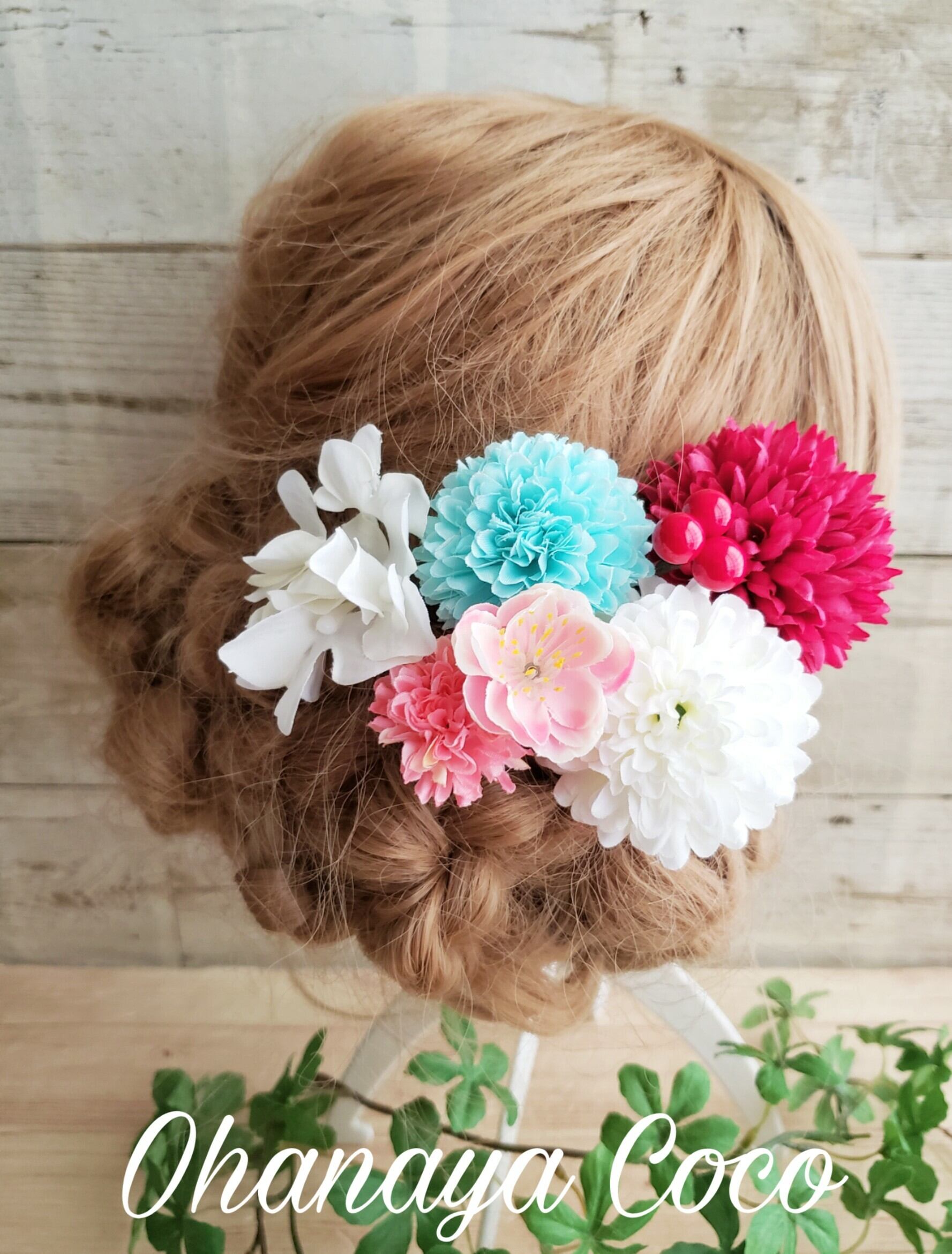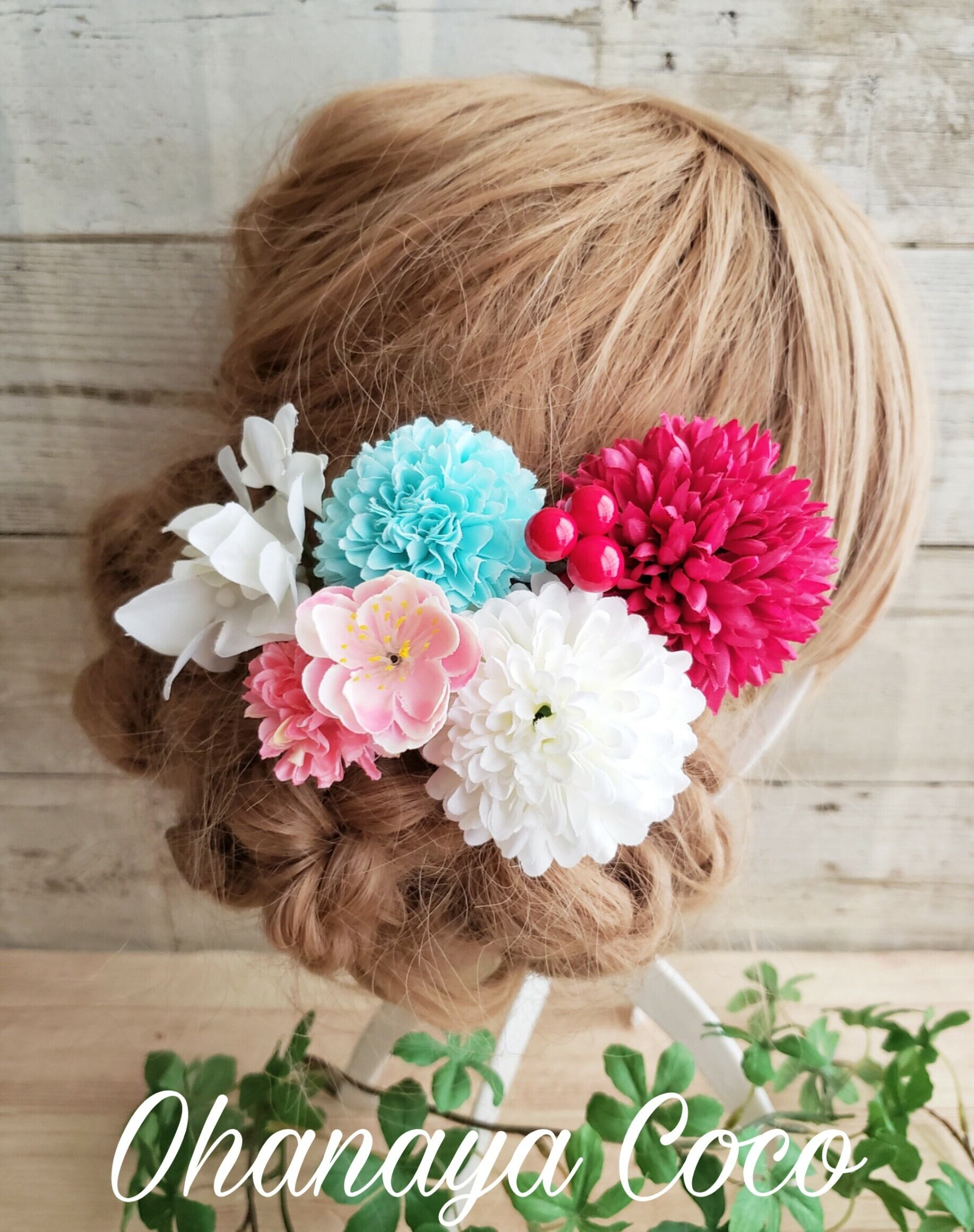 こちらの商品は花姫 ポンポンマムの髪飾り7点Setです。
