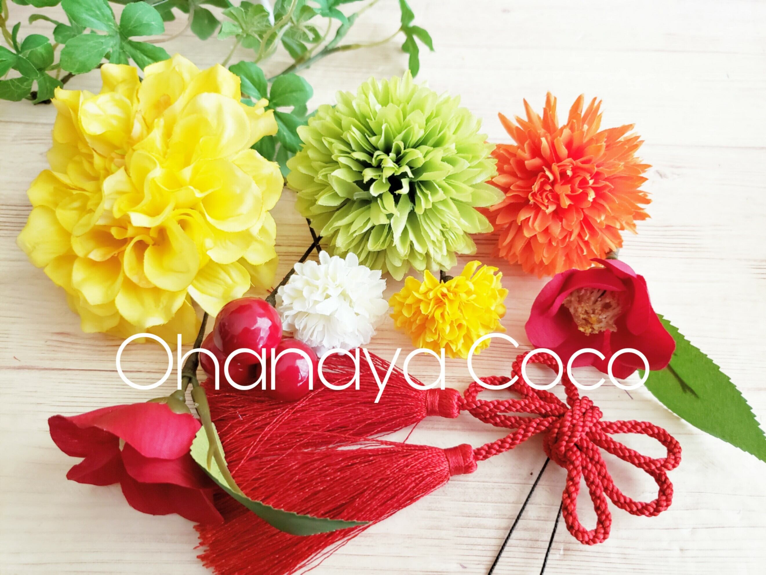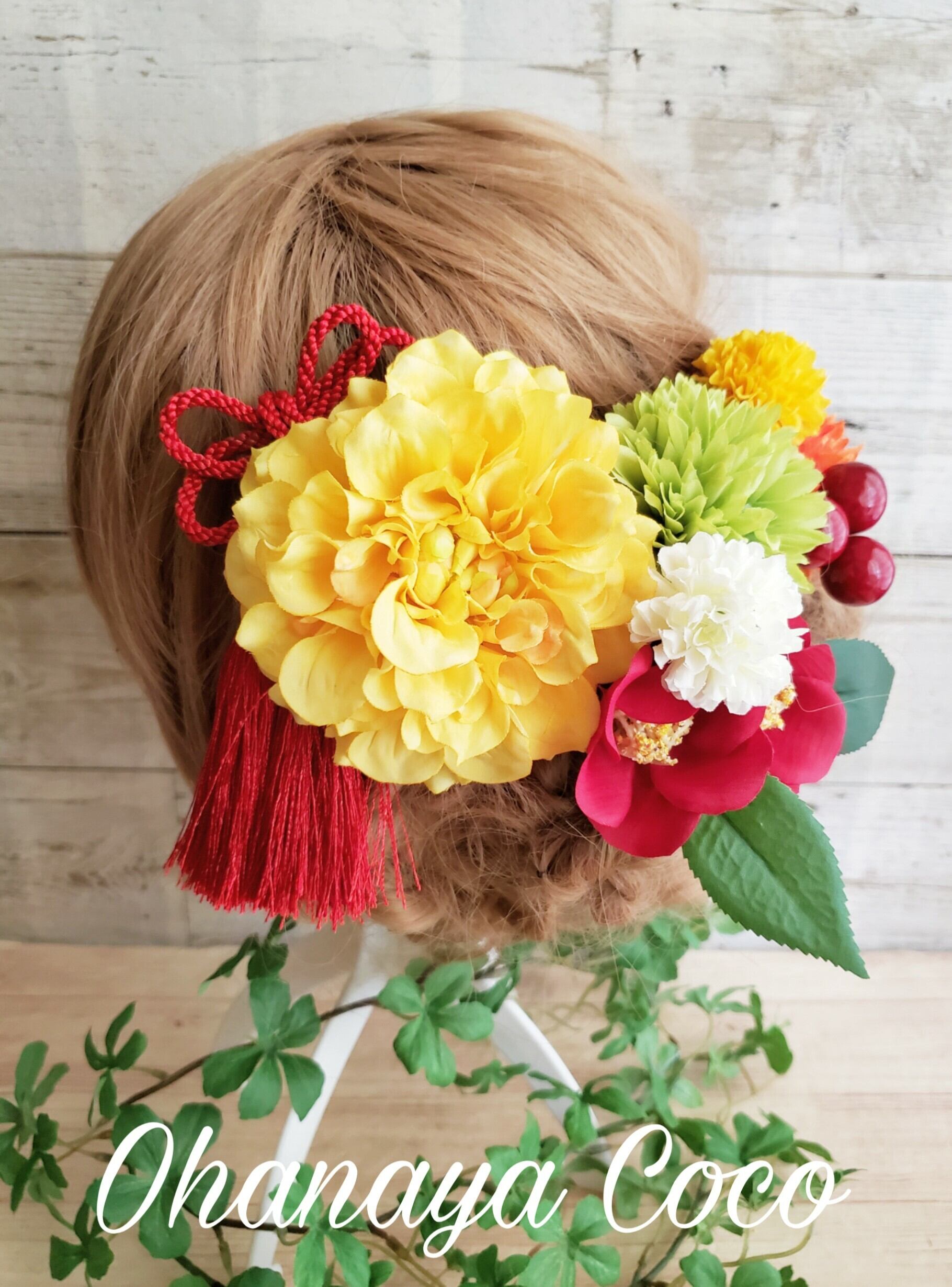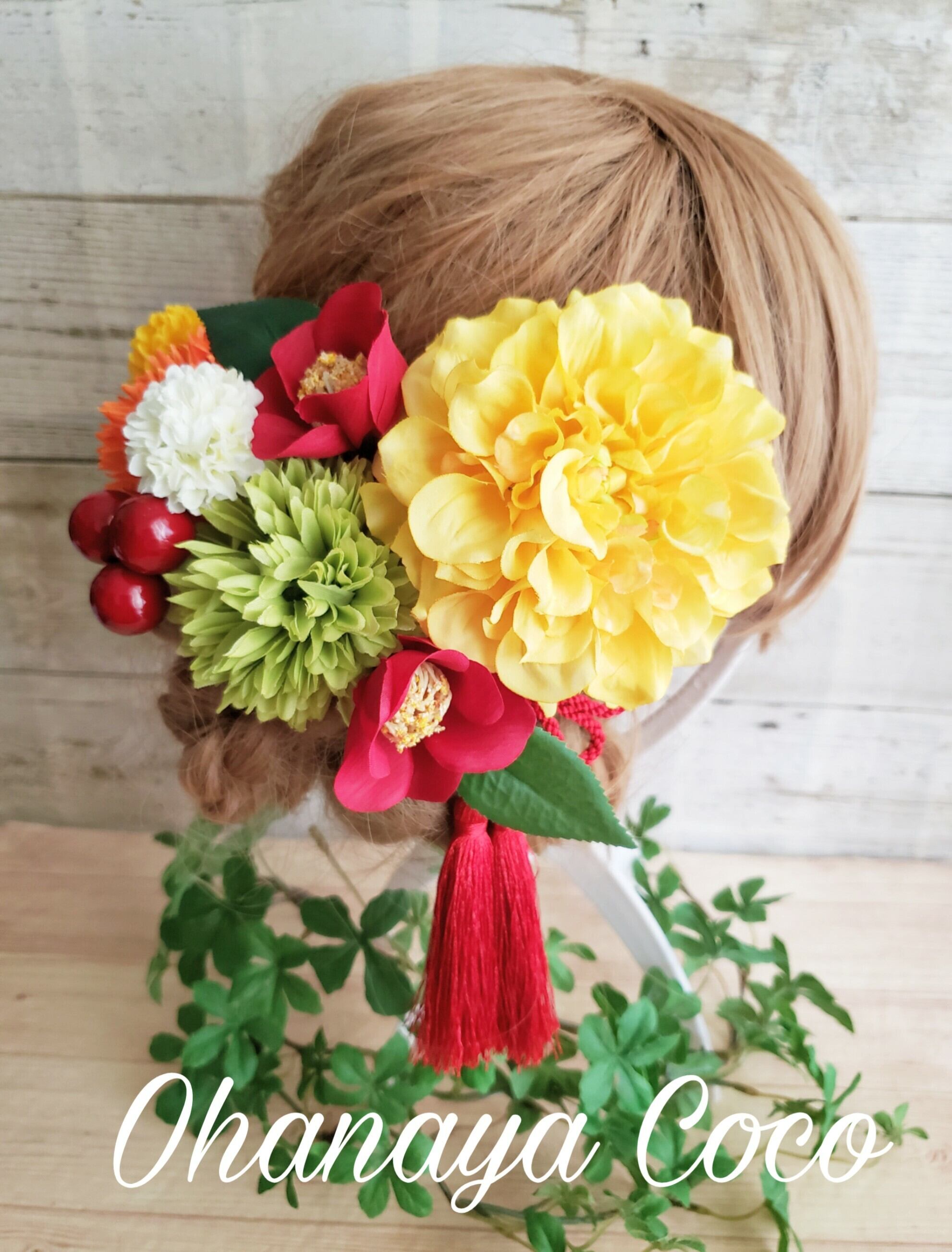 こちらの商品は爽花 黄色ダリアと椿の髪飾り9点Setです。