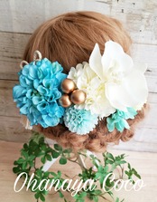 花雫 胡蝶蘭とスカイブルーダリアの髪飾り8点Set No578 成人式