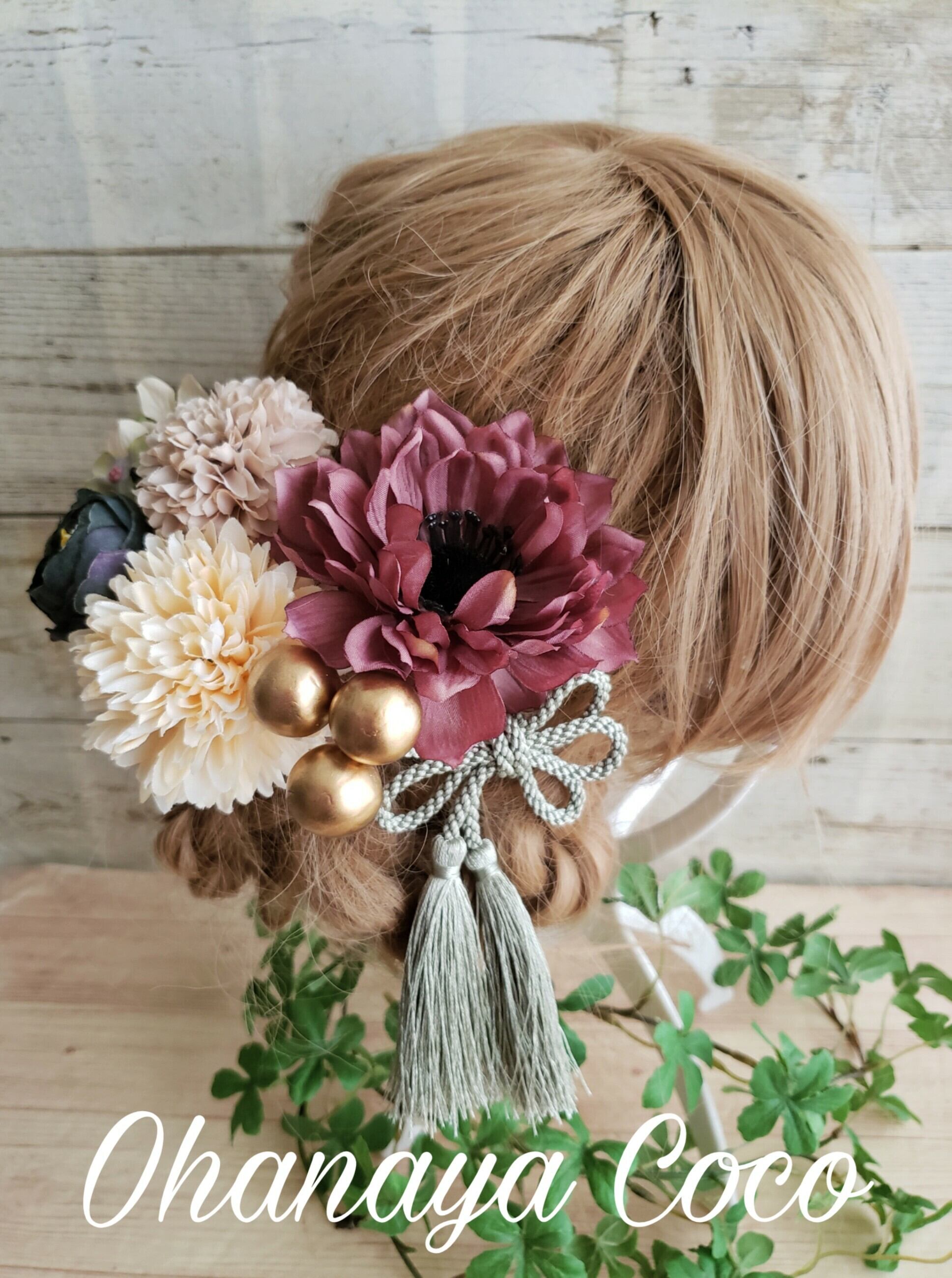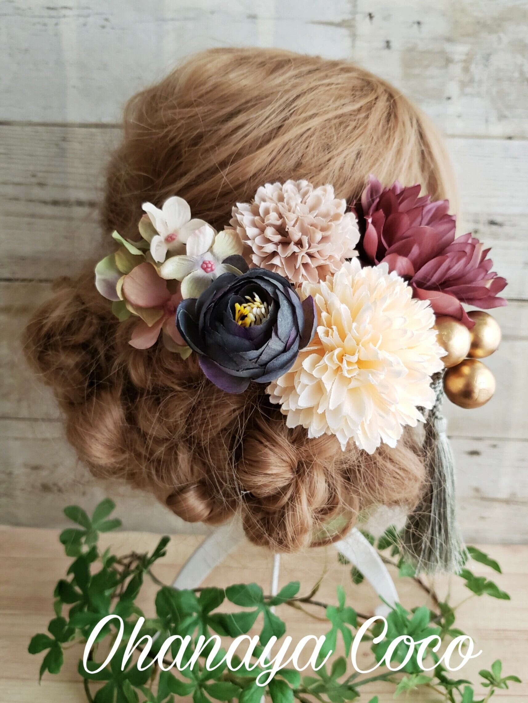 大人可愛い アンティーク風アネモネの髪飾り7点Set No592