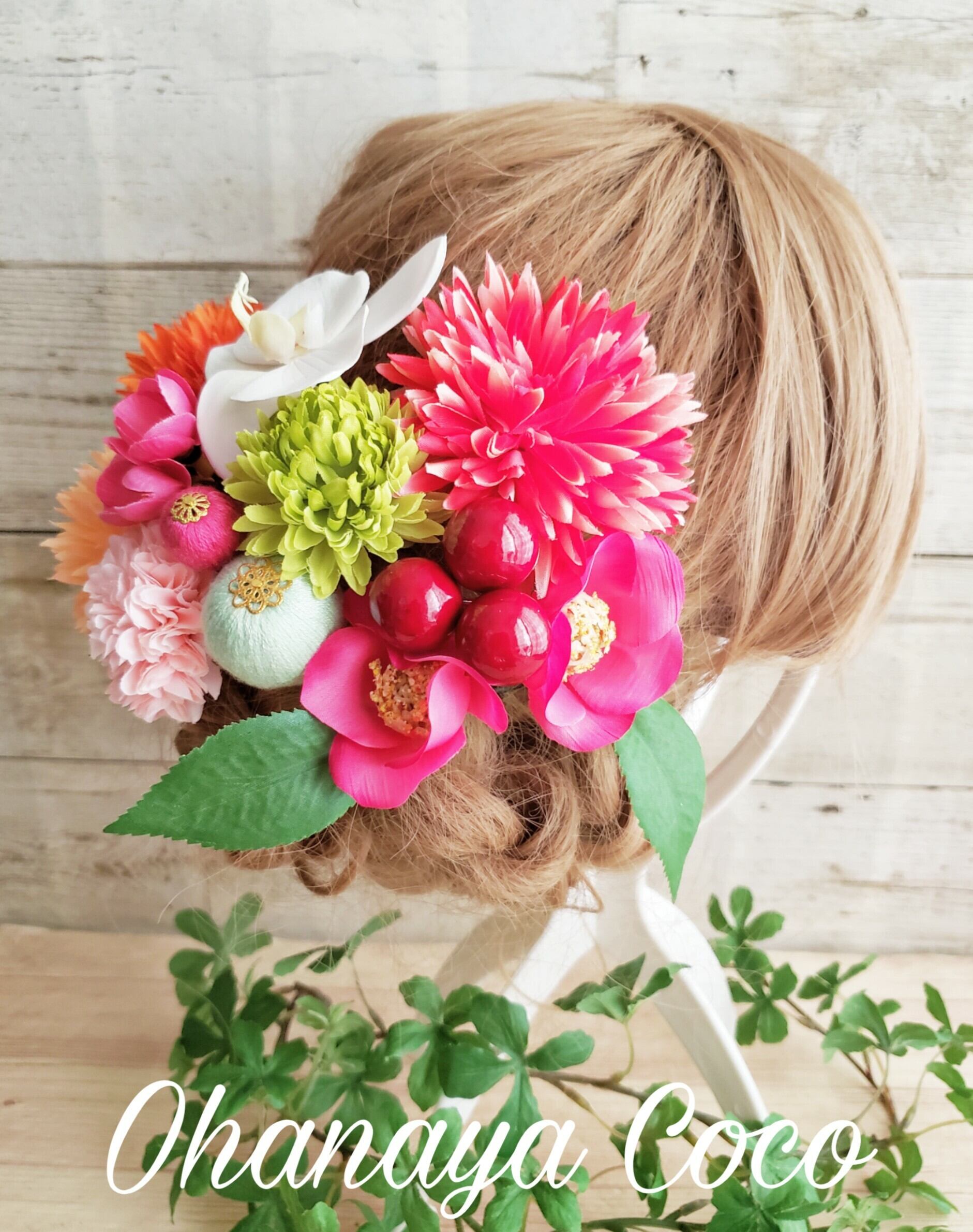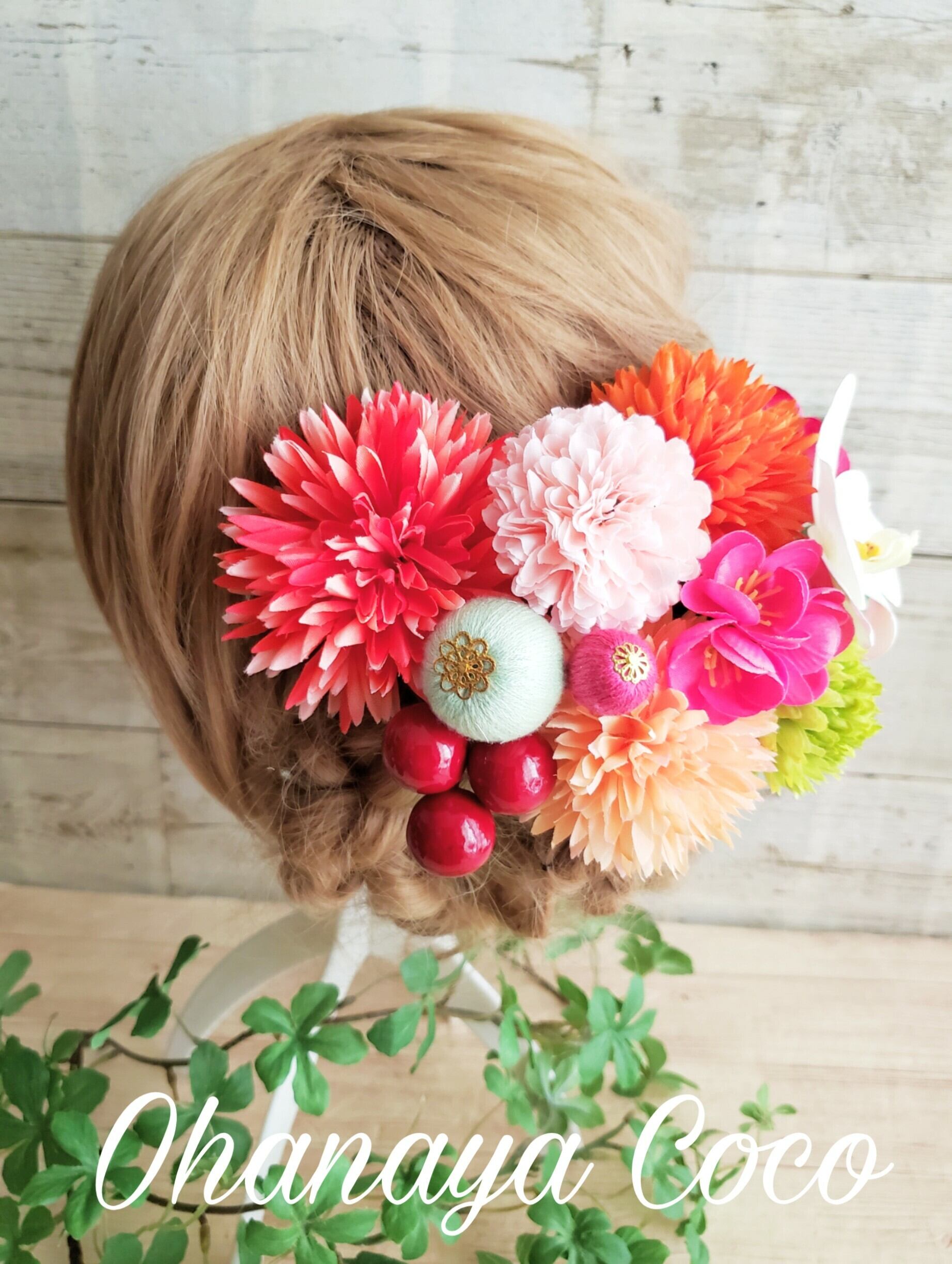 花kirari 椿とマムとponponボールの髪飾り12点Set No593