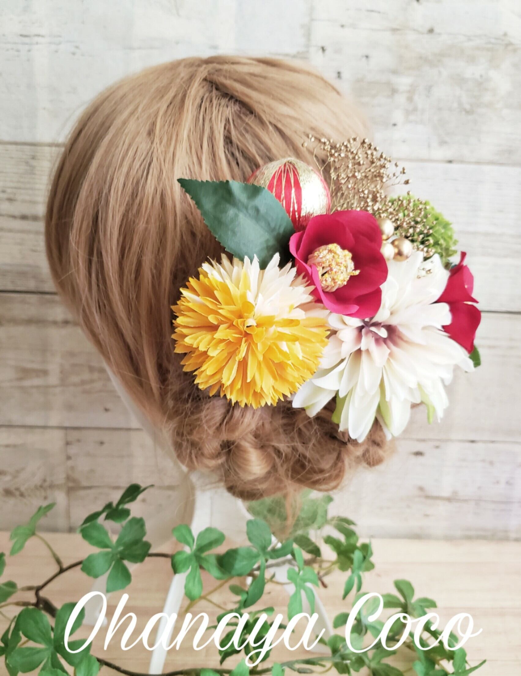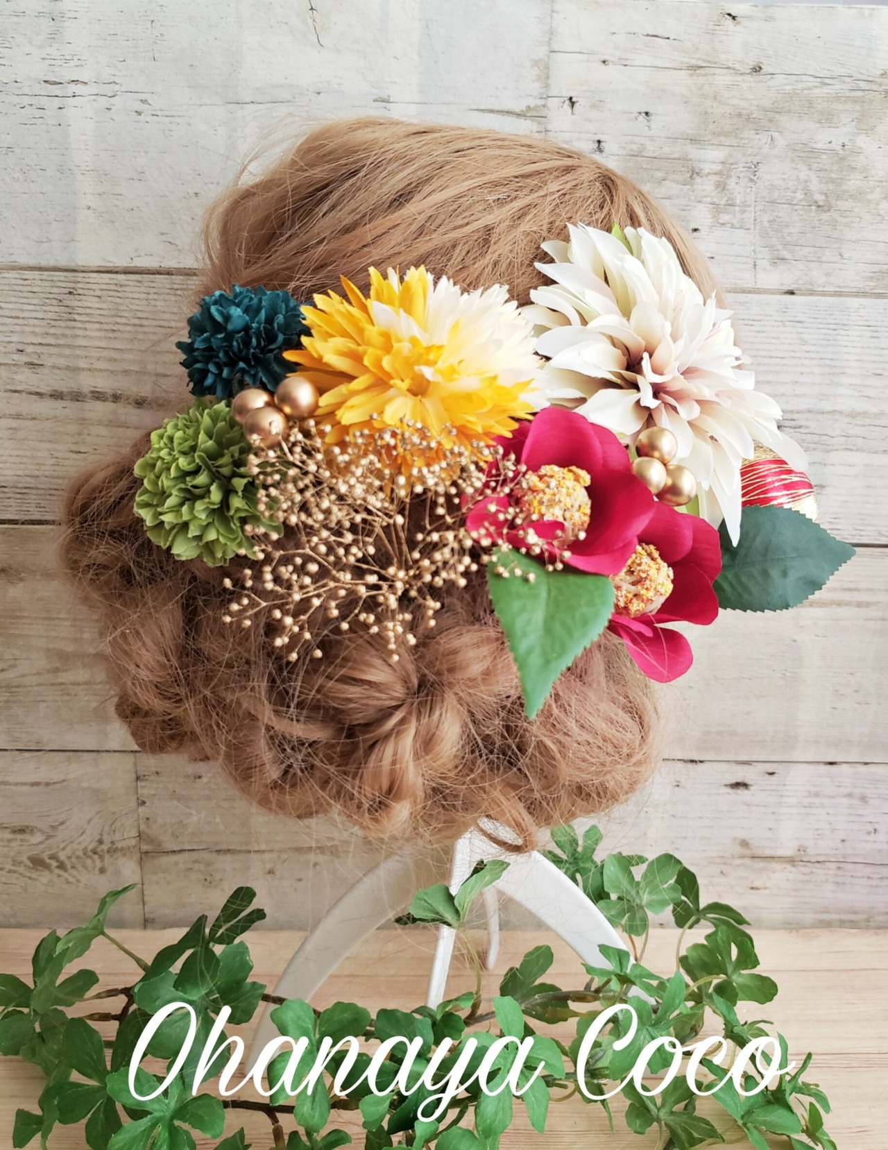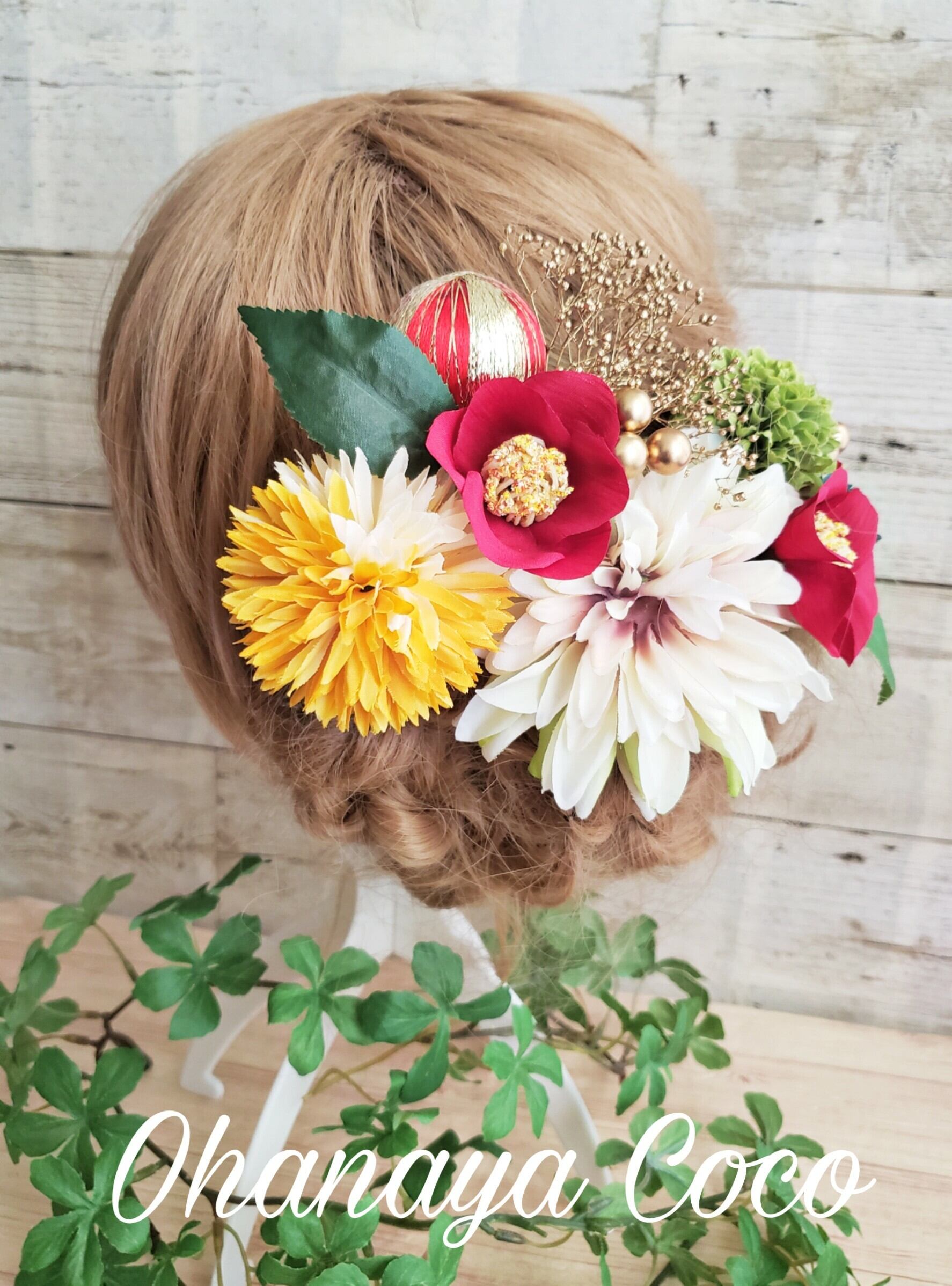 こちらの商品は花姫 ダリアと椿の髪飾り10点Set です。