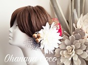また、撮影角度などにより大きく見える場合もありますので実際の髪飾りの大きさは記載のサイズをご確認下さいませ。