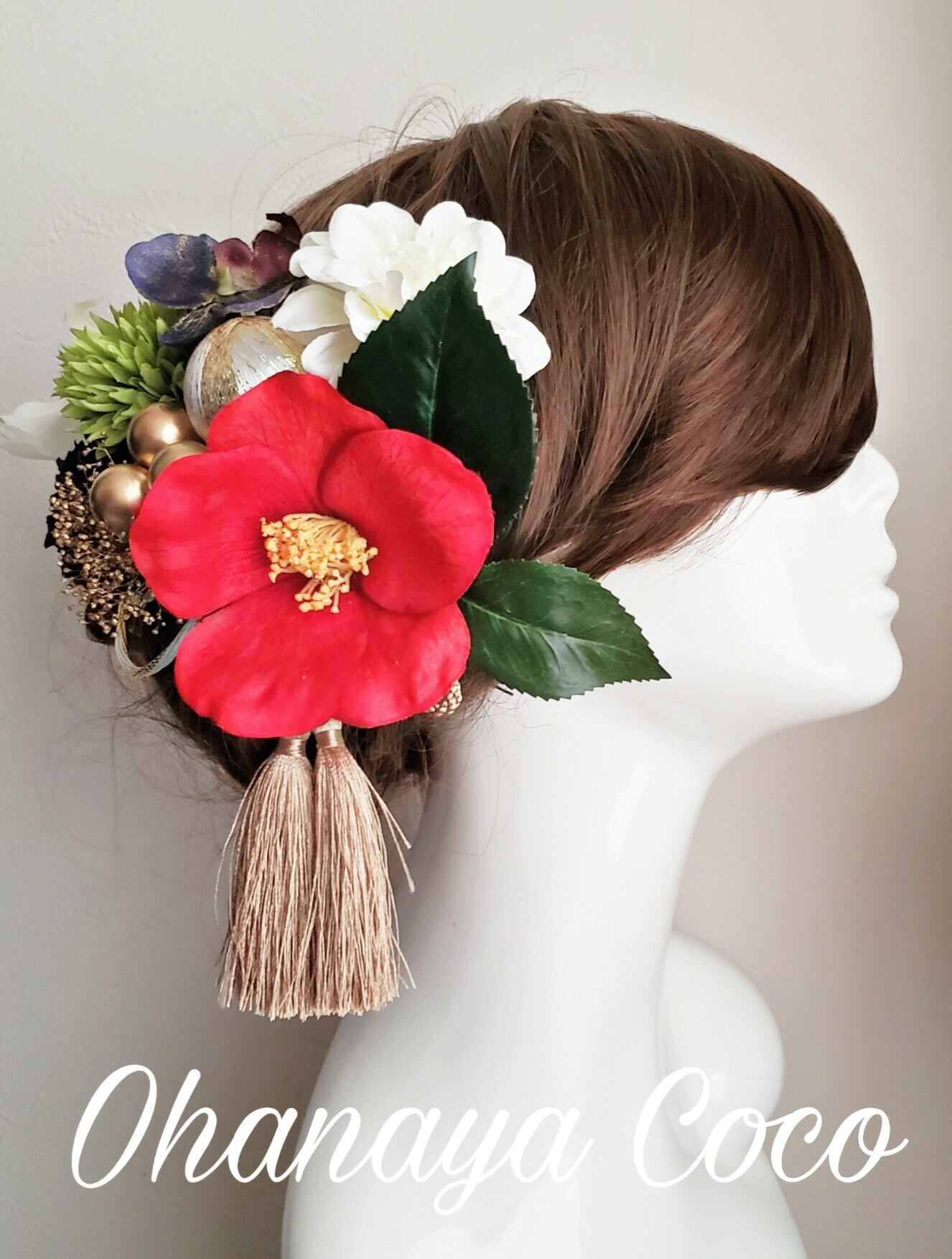 撮影角度などにより大きく見える場合もありますので実際の髪飾りの大きさは記載のサイズをご確認下さいませ。