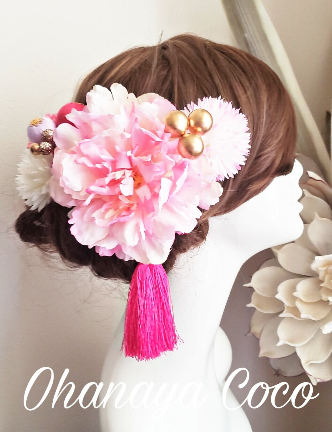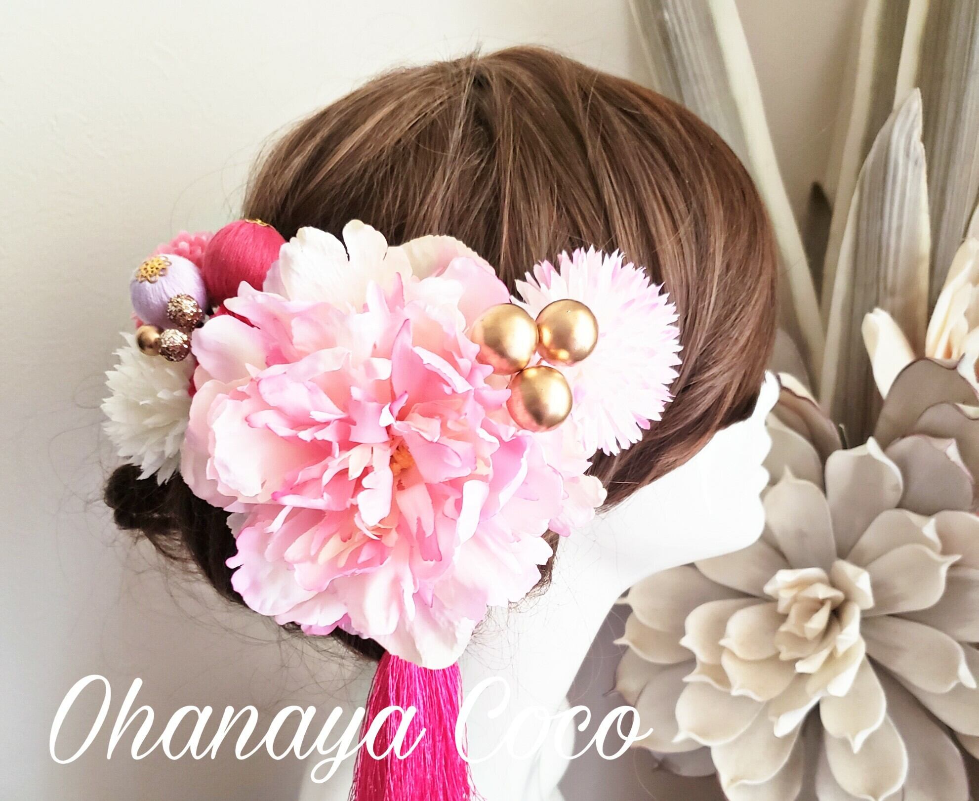こちらの商品は甘花 ピンク系お花と和ponボールの髪飾り10点Setです。