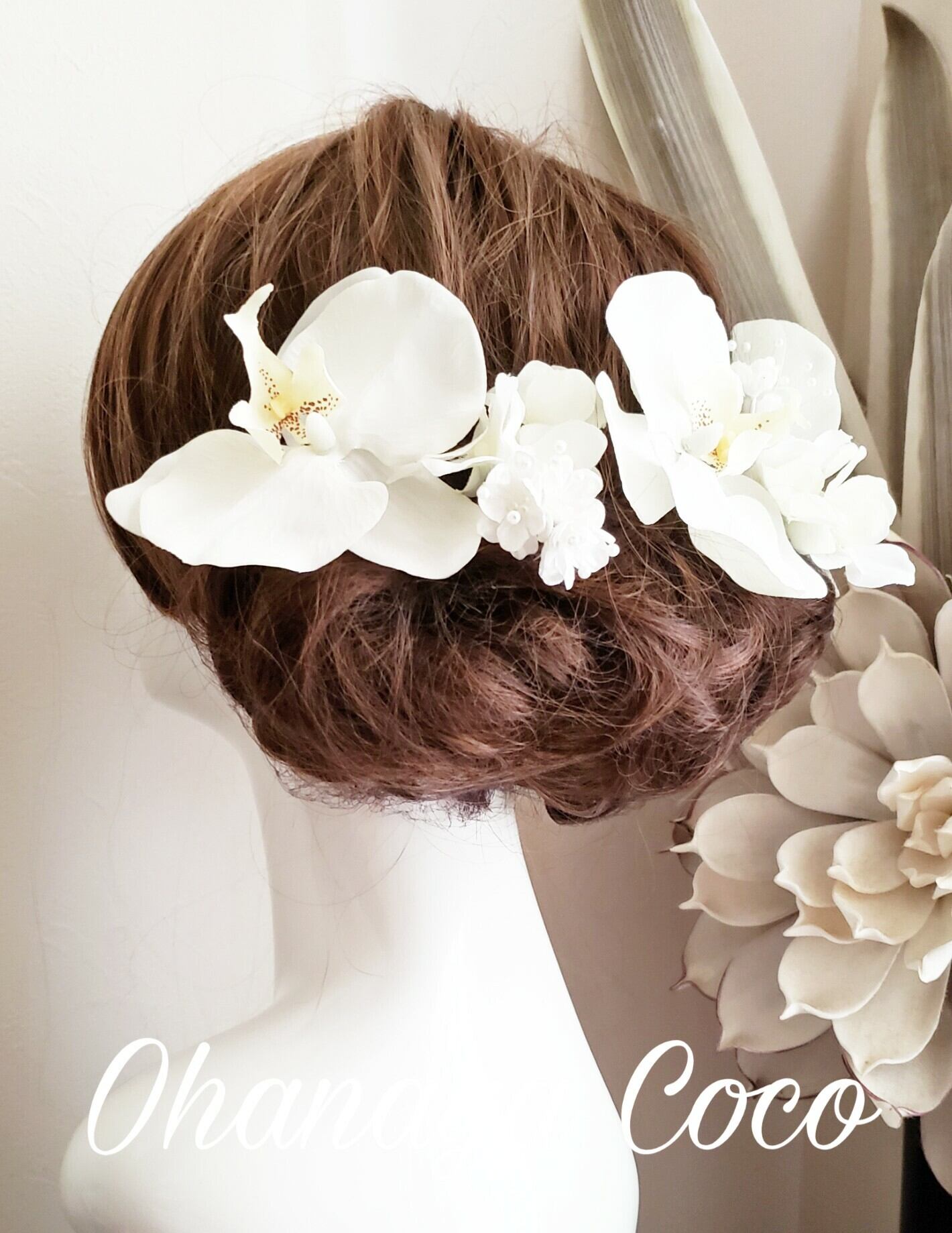 mik02k様専用 hirahira胡蝶蘭とホワイト小花の髪飾り9点Set オーダー商品20190926イ