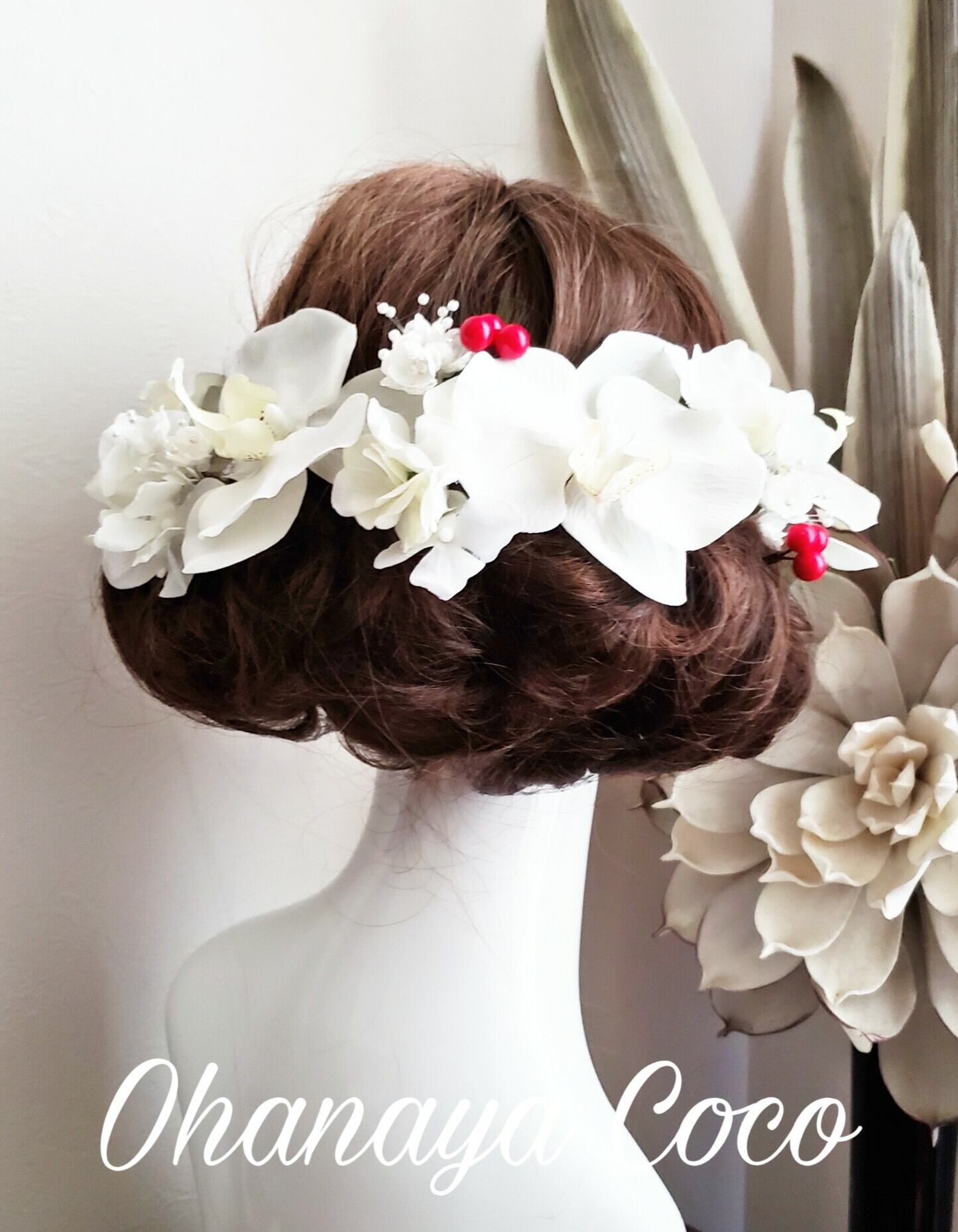 hirahira 蝶舞う胡蝶蘭とホワイト小花の髪飾り14点Set です。