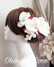 専用 hirahira胡蝶蘭とホワイト小花の髪飾り14点Set オーダー商品試作品