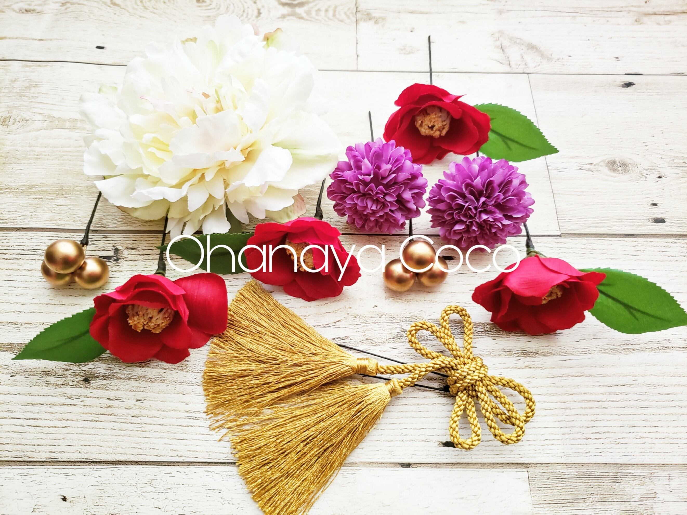 速達発送 専用 華やか芍薬と椿の髪飾り10点Set オーダー商品20190828B