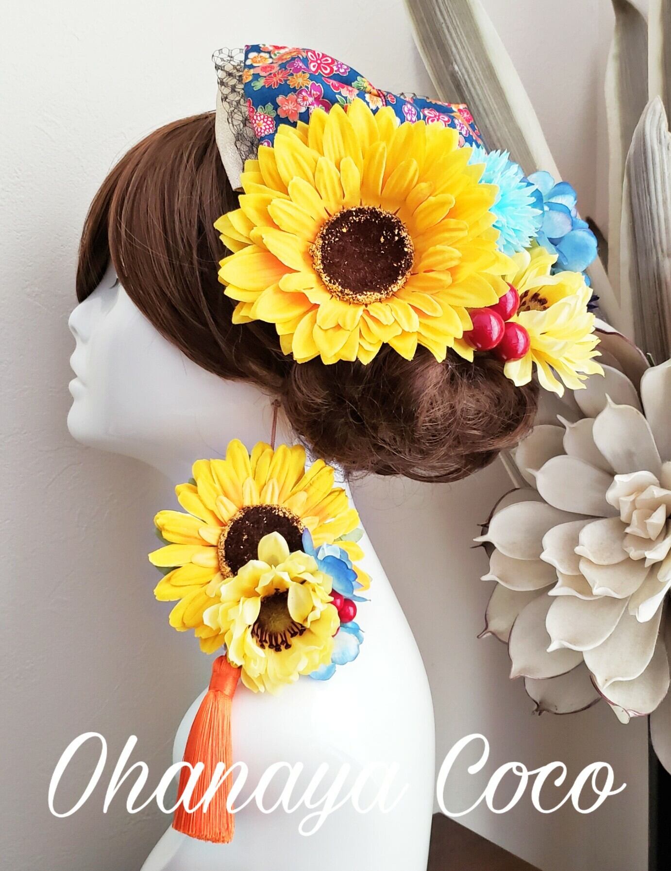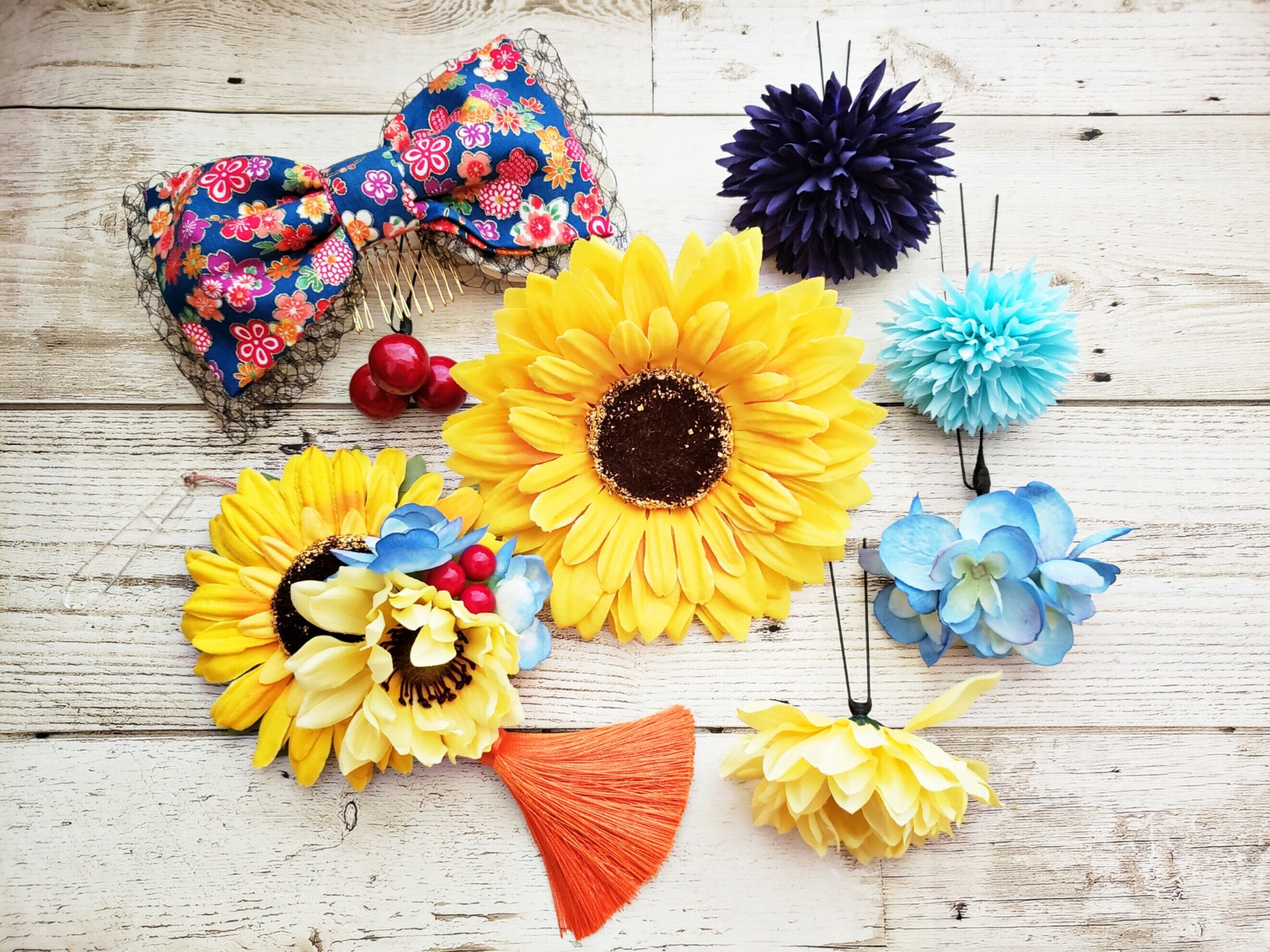 爽花 和柄リボンひまわりの髪飾り 帯飾り8点Set オーダー商品