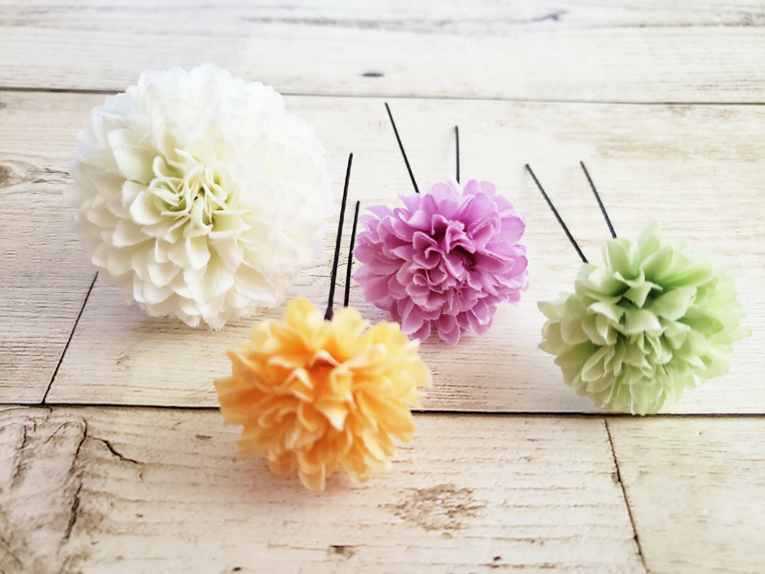 撮影角度などにより大きく見える場合もありますので実際の髪飾りの大きさは記載のサイズをご確認下さいませ。