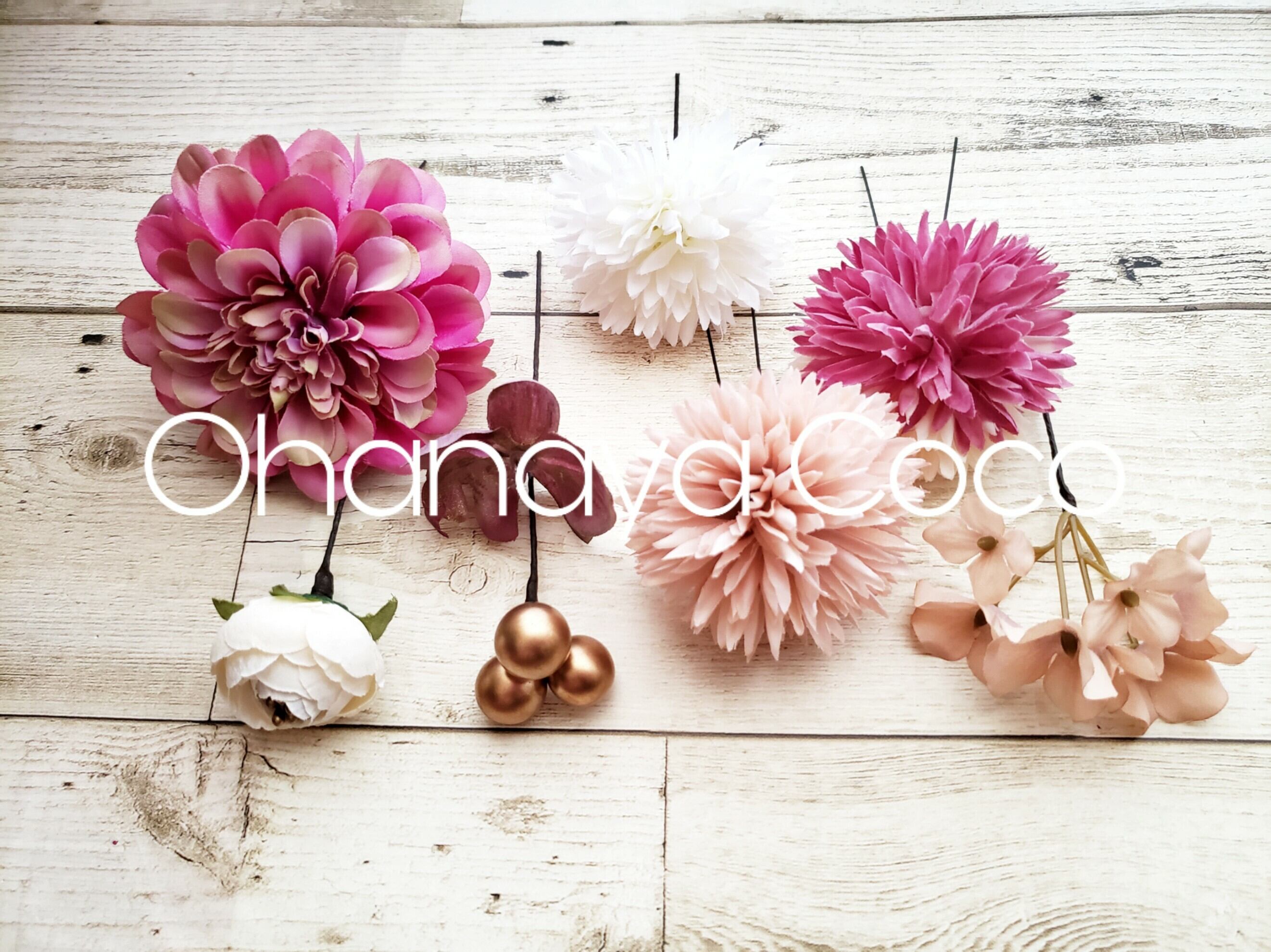 大人可愛い アンティーク風くすみカラーの髪飾り8点Set No636