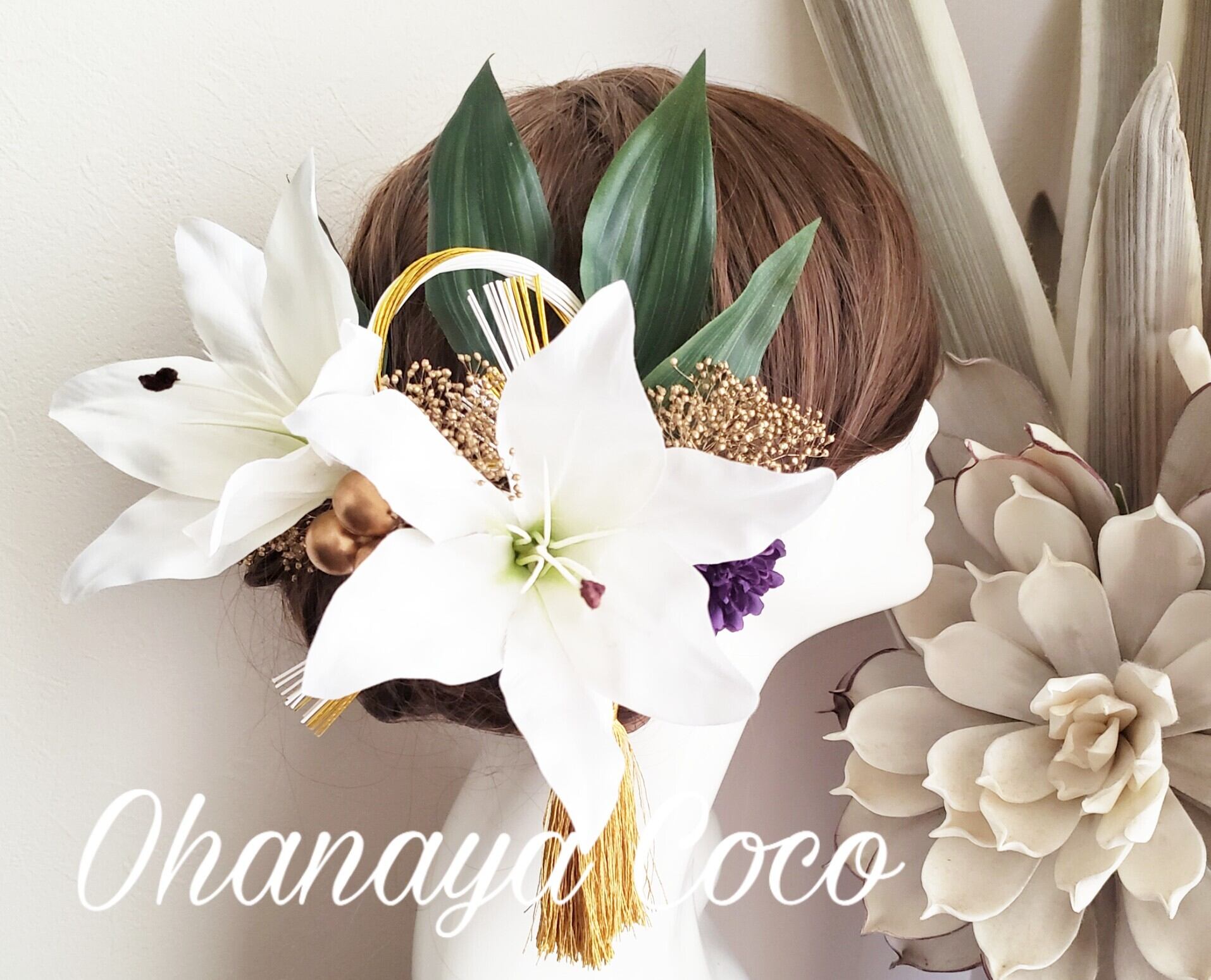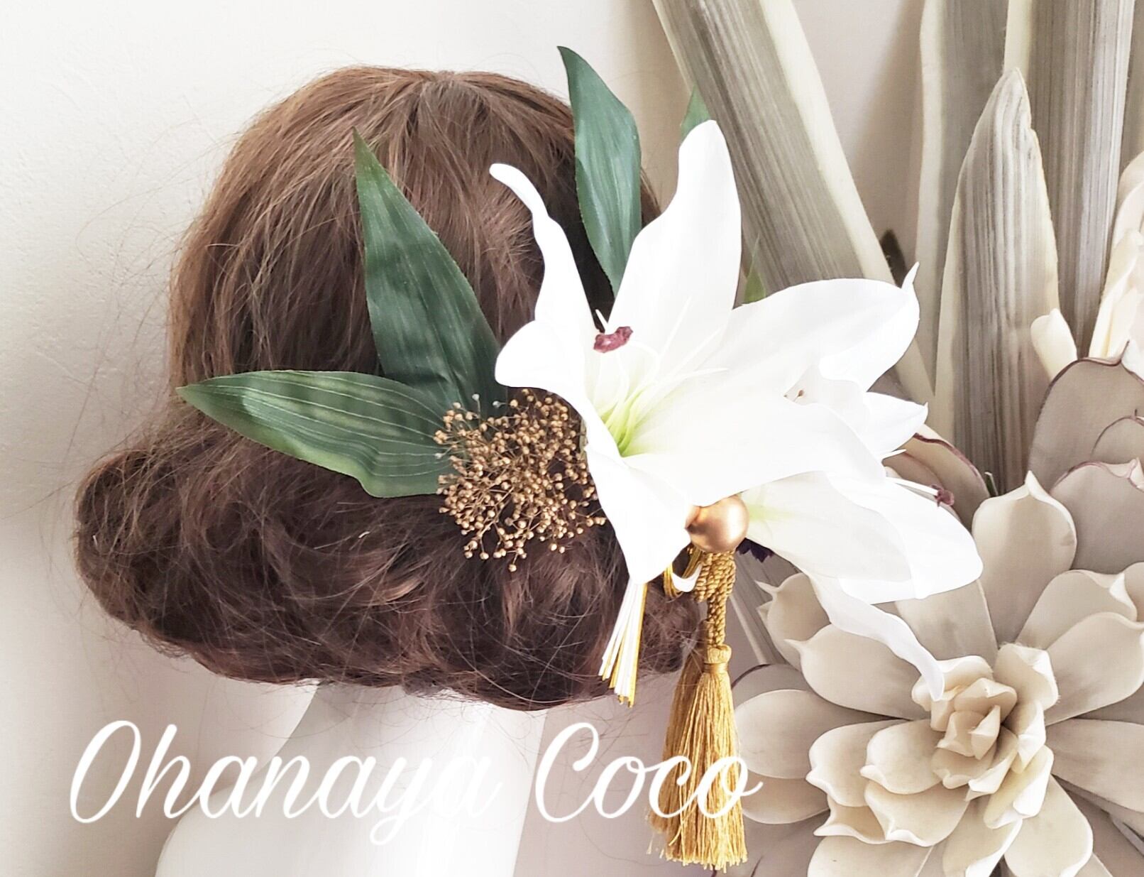オーダー商品 ユリとゴールドかすみ草の髪飾り16点Setです。
