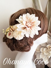 また、撮影角度などにより大きく見える場合もありますので実際の髪飾りの大きさは記載のサイズをご確認下さいませ。