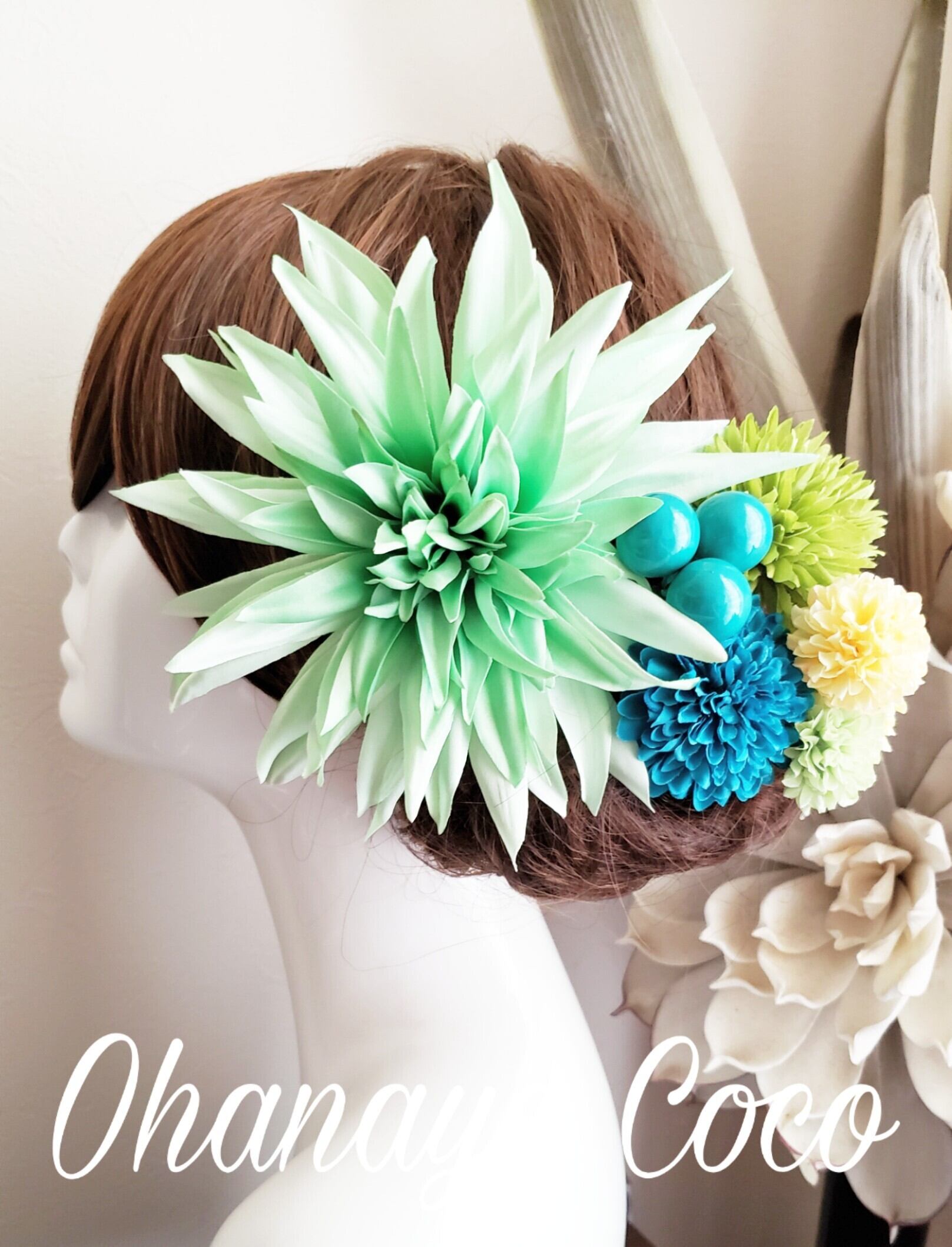 花kirari 大きなダリアとポンポンマムの髪飾り7点Setです。
