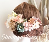 また、撮影角度などにより大きく見える場合もありますので実際の髪飾りの大きさは記載のサイズをご確認下さいませ。