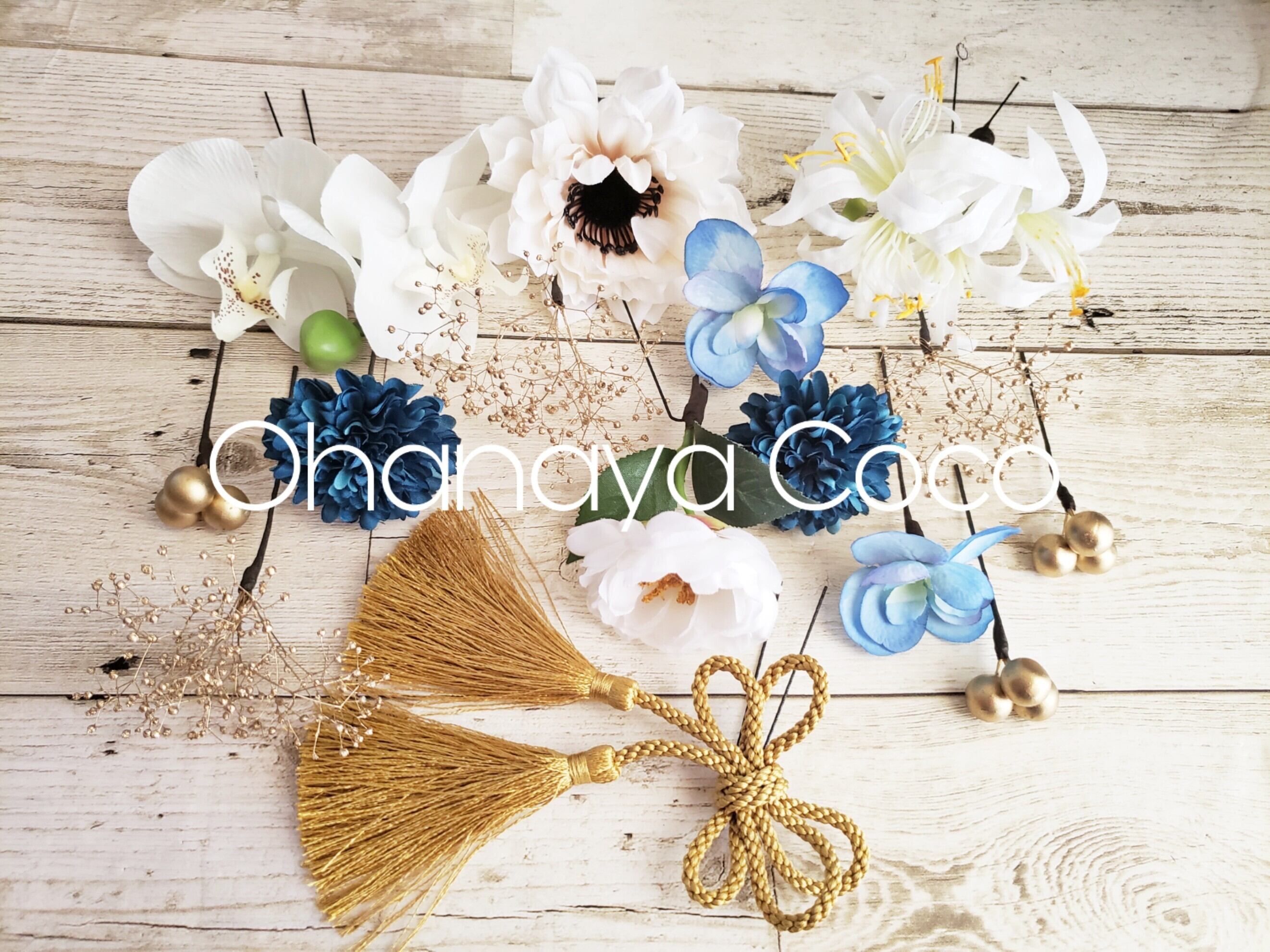 また、撮影角度などにより大きく見える場合もありますので実際の髪飾りの大きさは記載のサイズをご確認下さいませ。