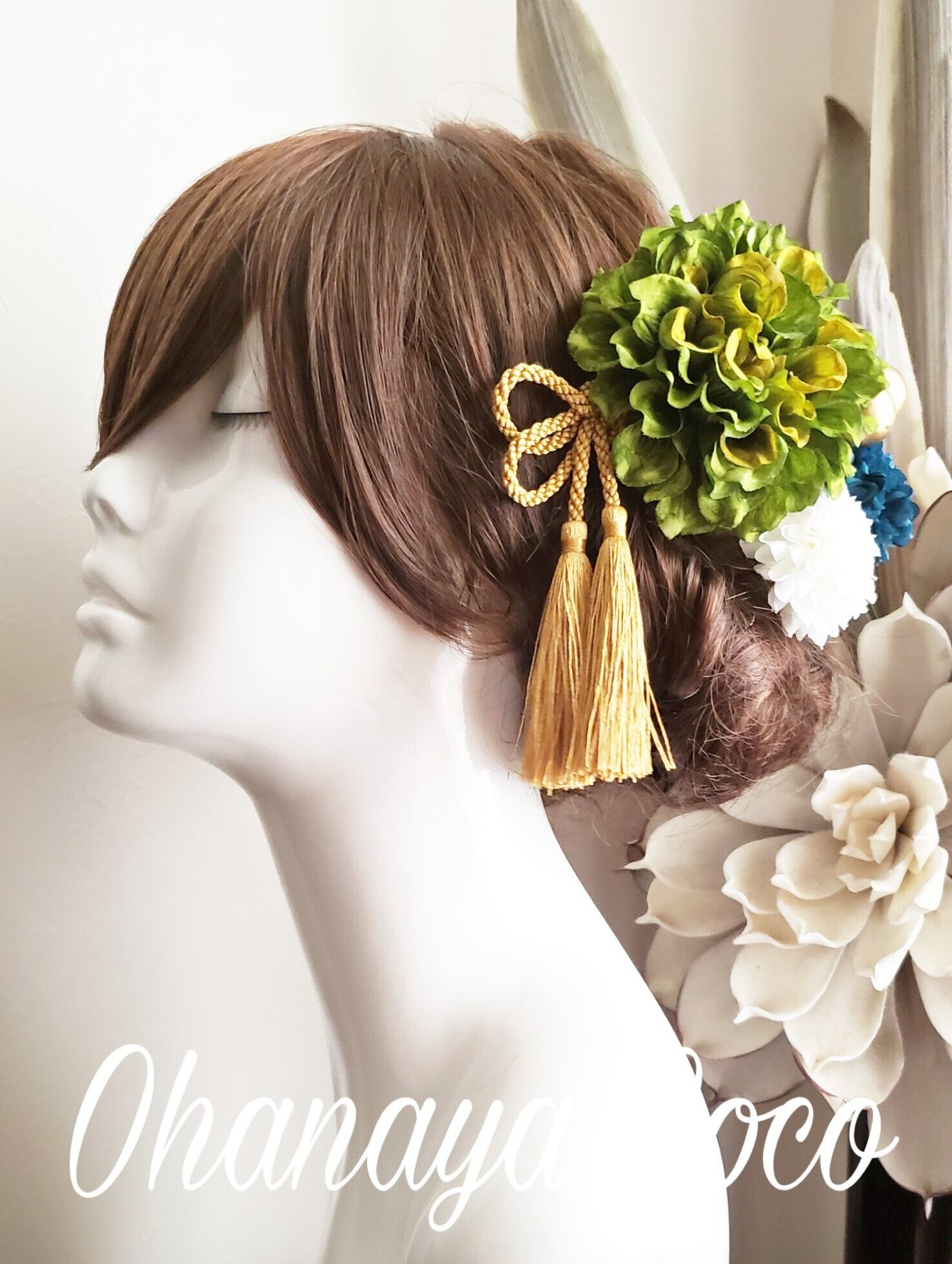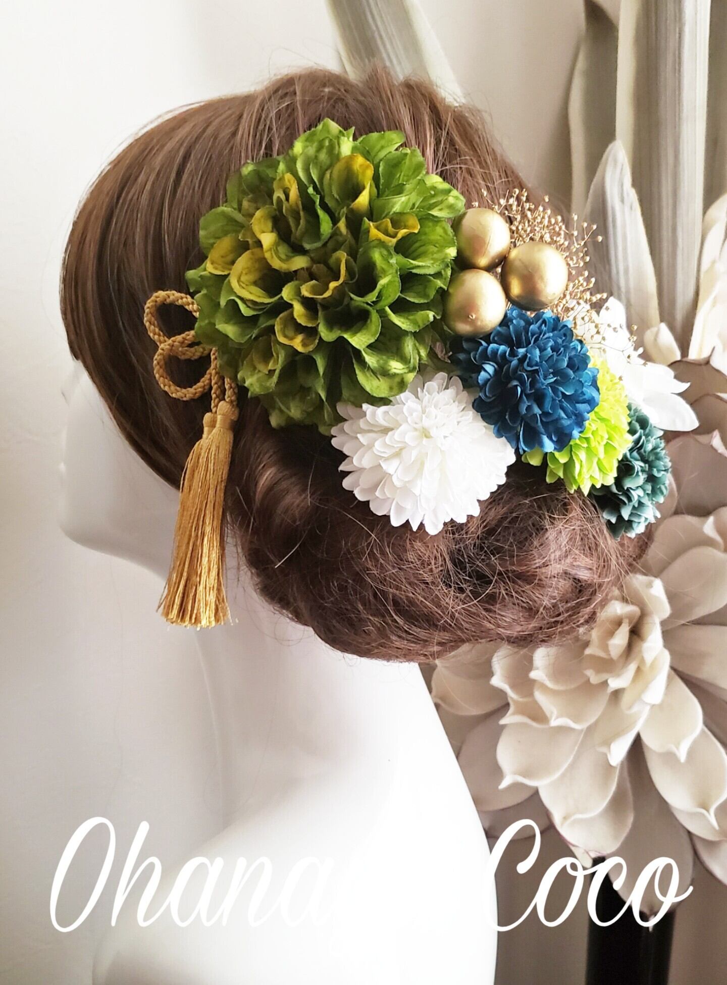専用 華々 グリーン系ダリアとマムの髪飾り9点Set オーダー商品
