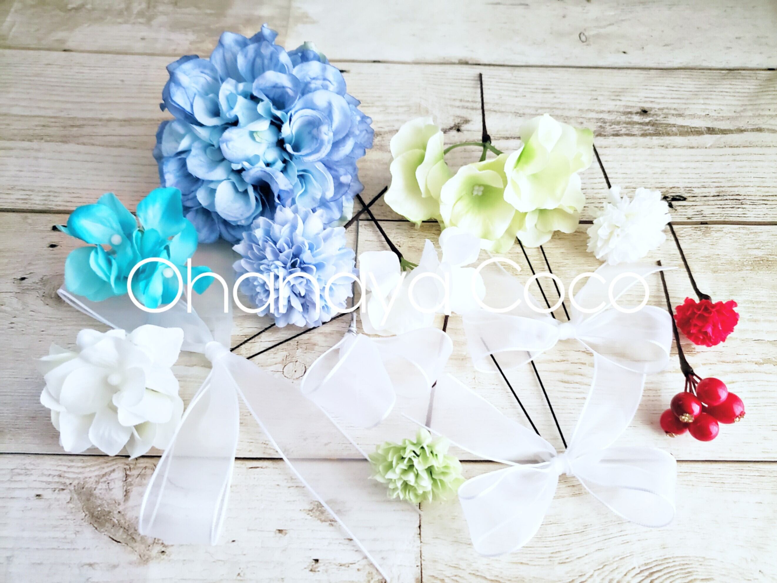 お花はワイヤリングにてIピン加工してあります。