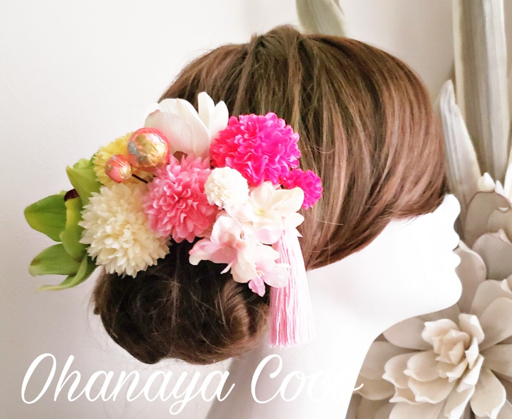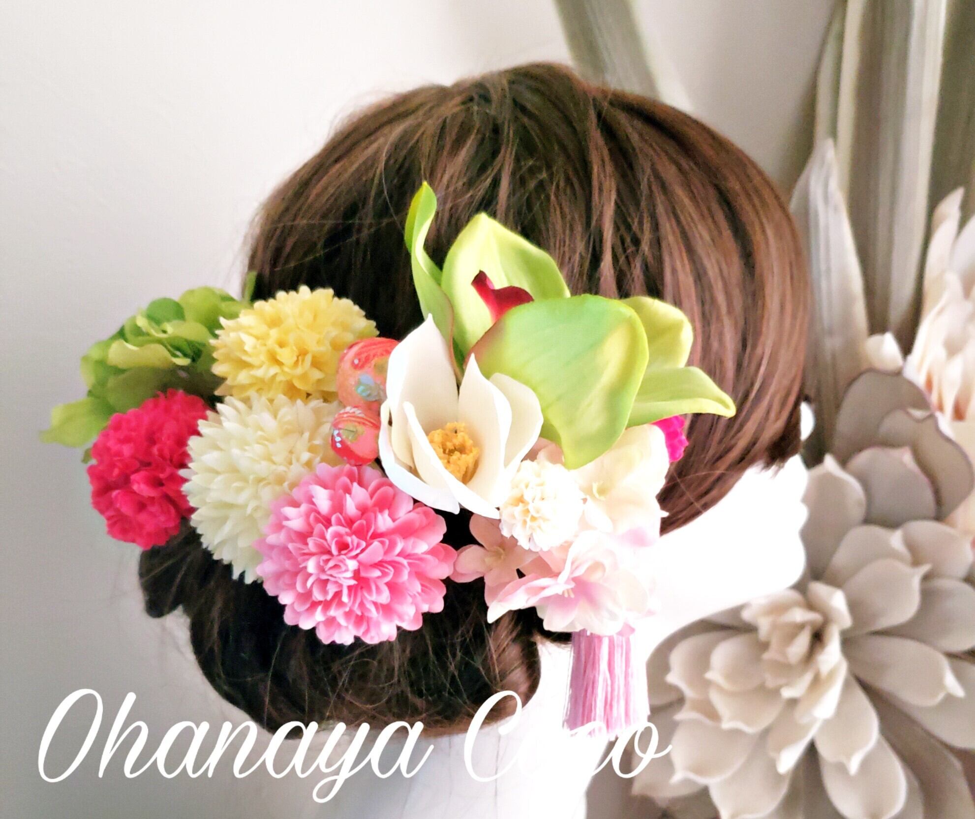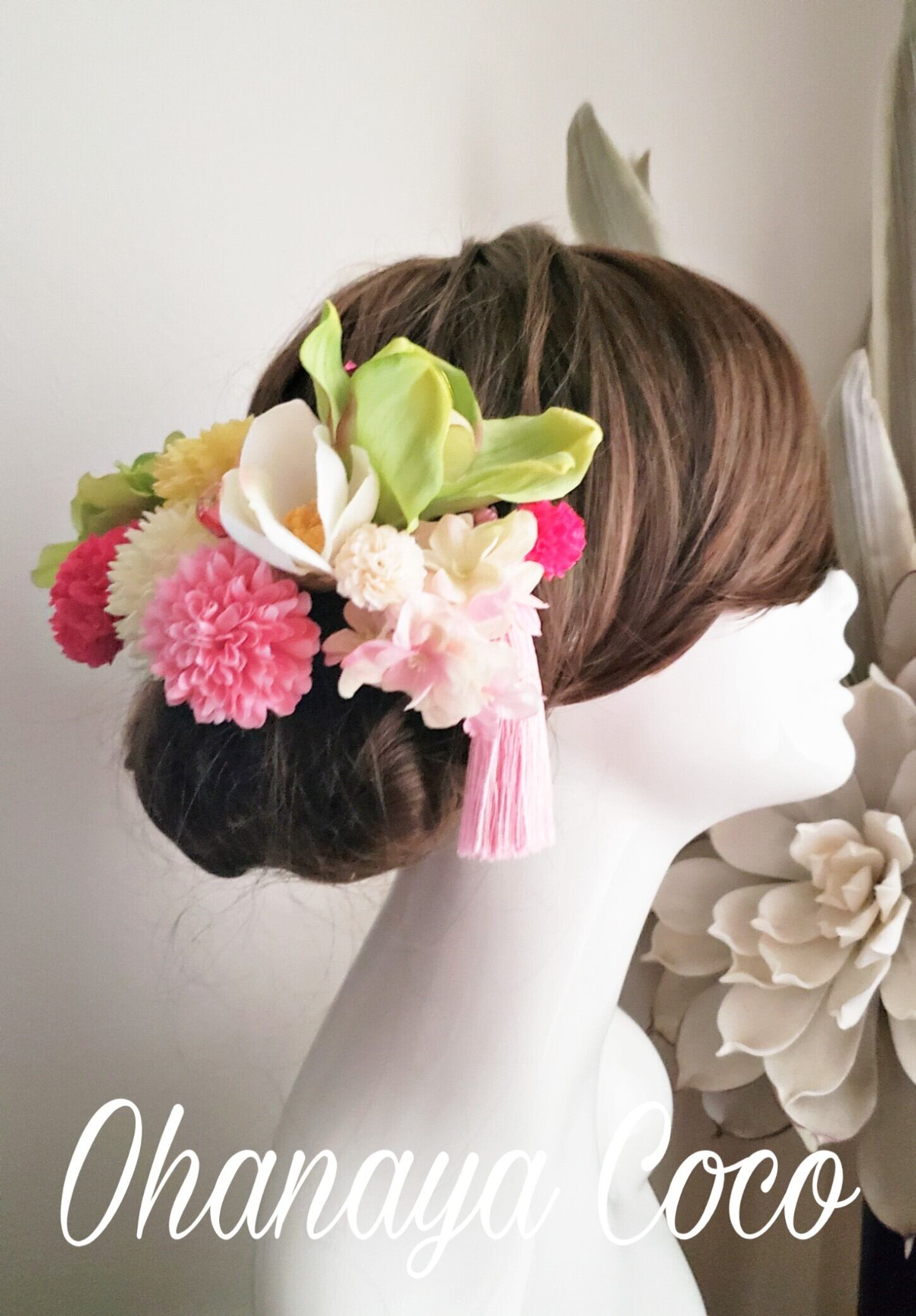 #和装 #造花 #白無垢 #成人式 #袴 #大正ロマン #髪飾りオーダー #ポンポンマム #キュート #和モダン #和風レトロ