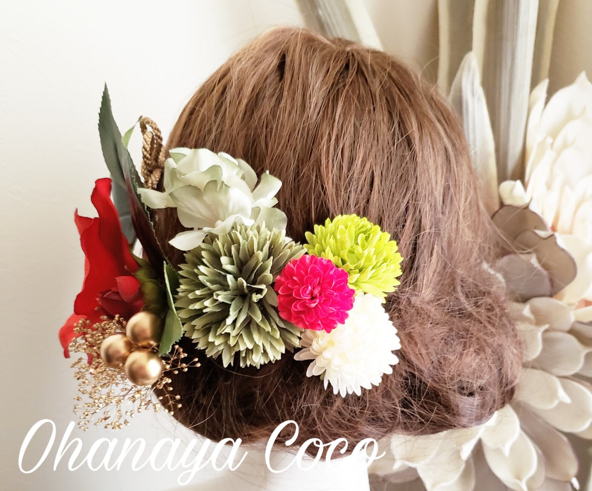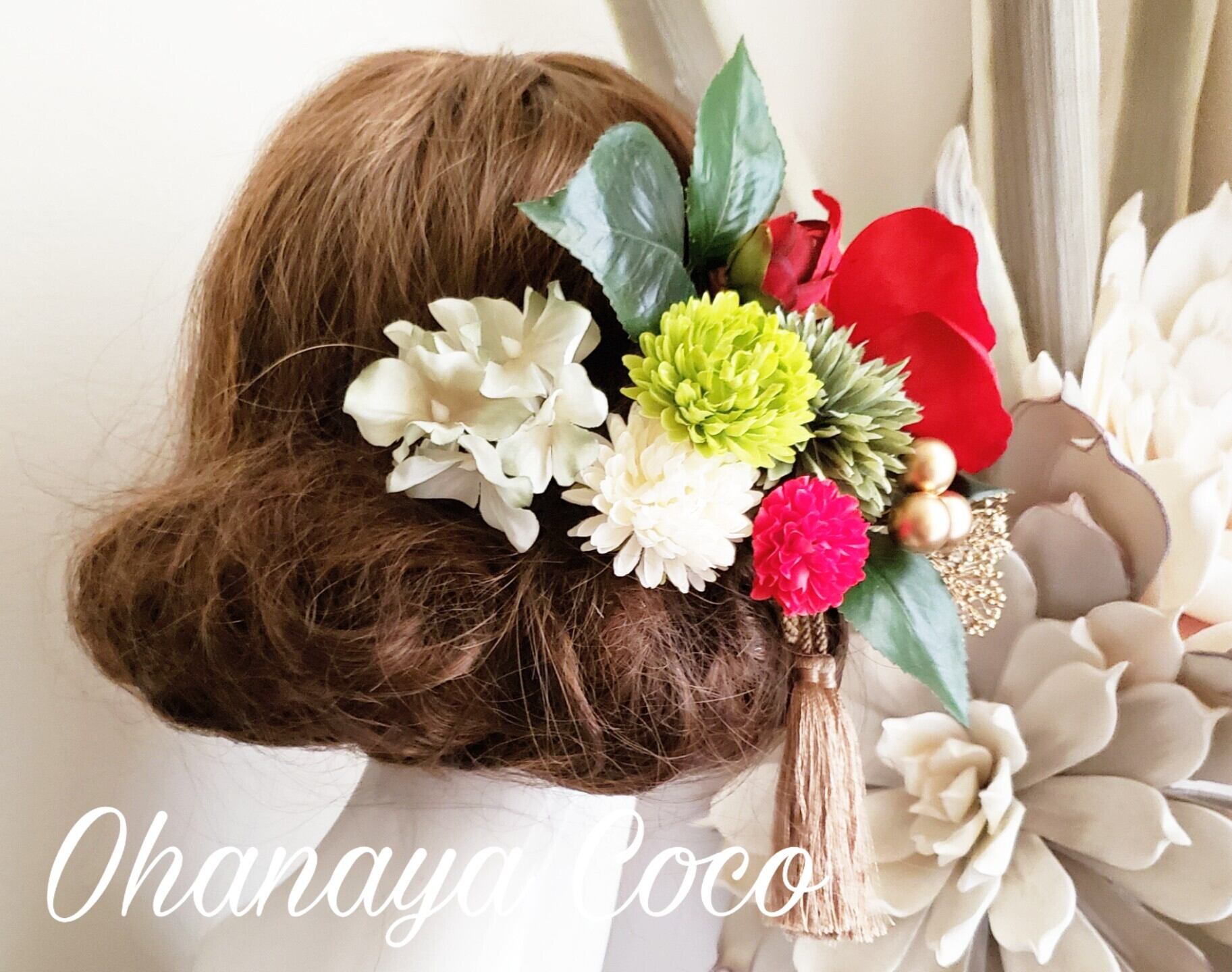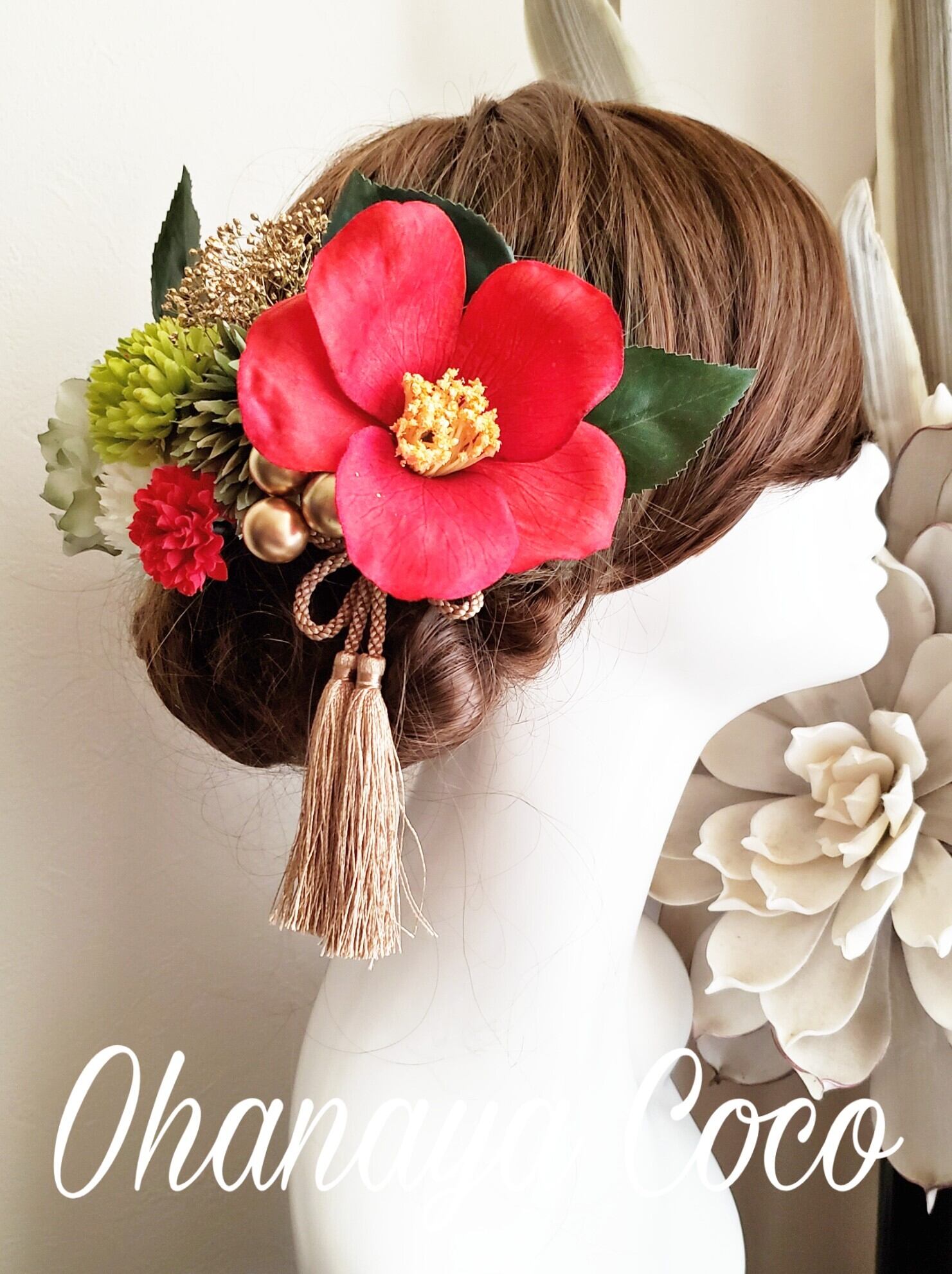再販 花雅 江戸椿とマムの和装髪飾り11点Set No691 振袖 袴 結婚式