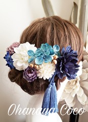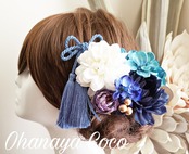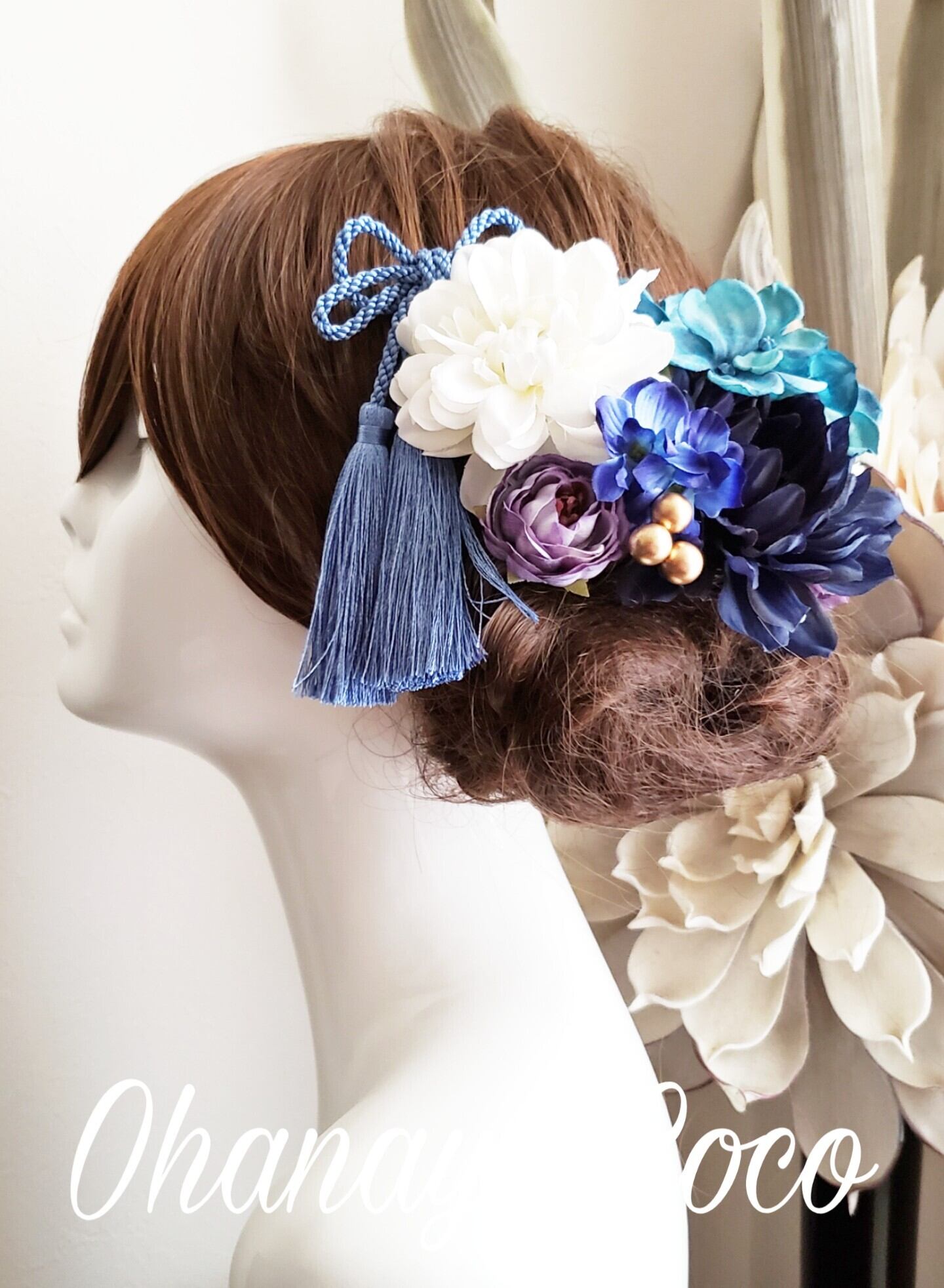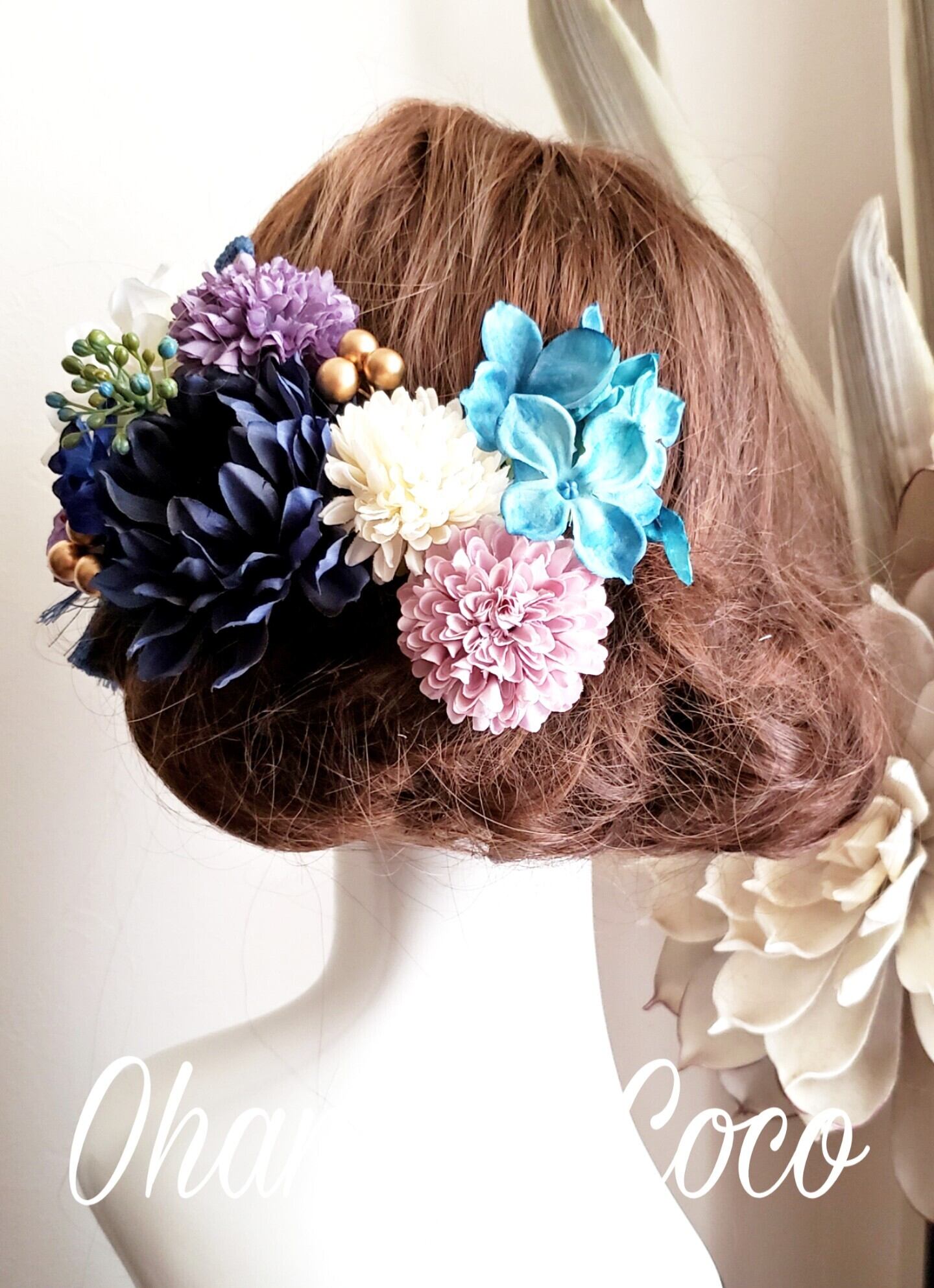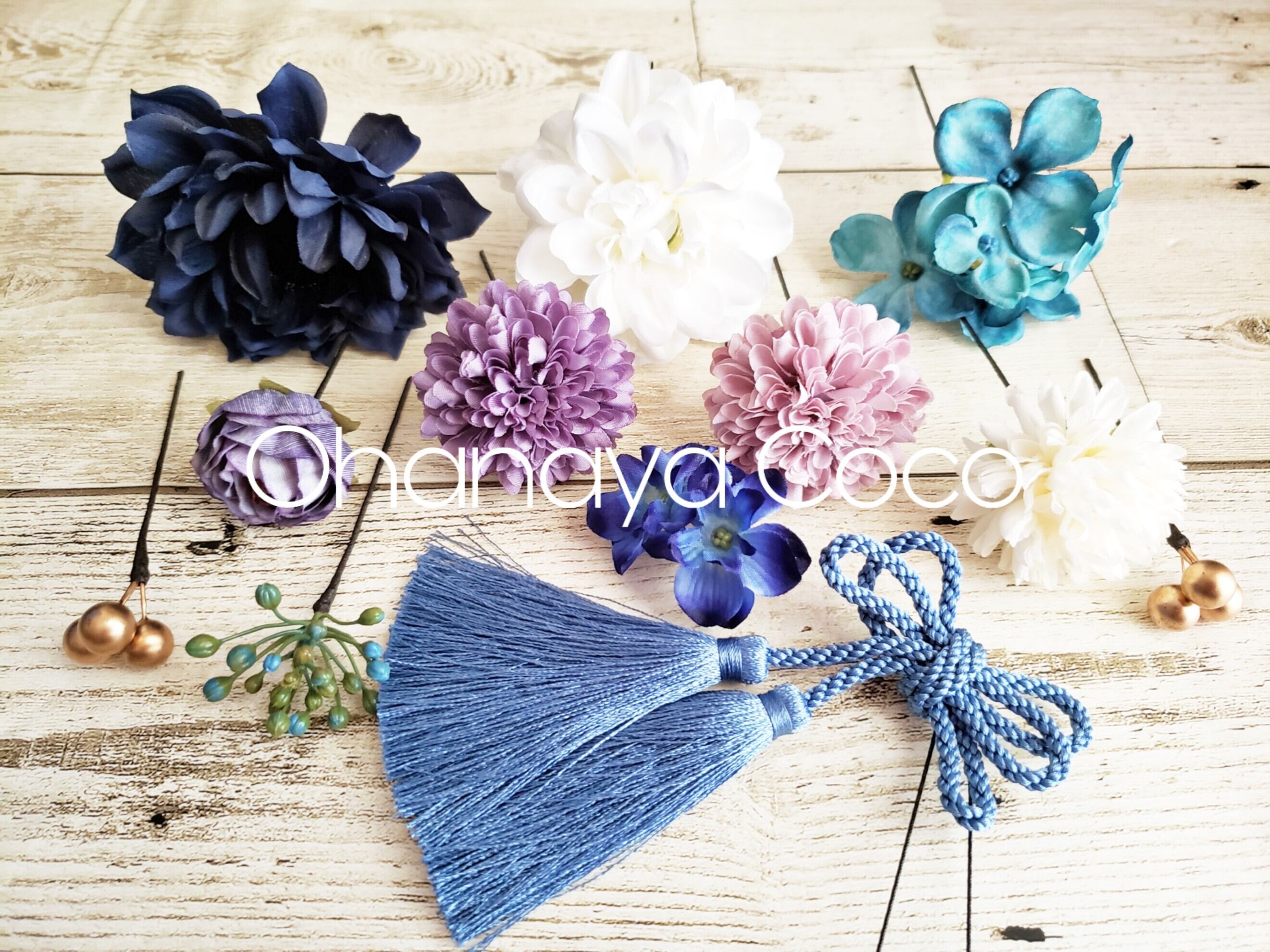 こちらの商品は凛々 インディゴブルー紫陽花とアネモネの髪飾り12点Setです。