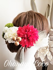 撮影角度などにより大きく見える場合もありますので実際の髪飾りの大きさは記載のサイズをご確認下さいませ。