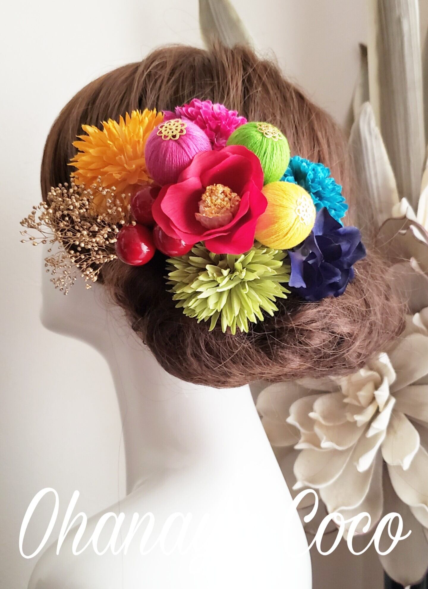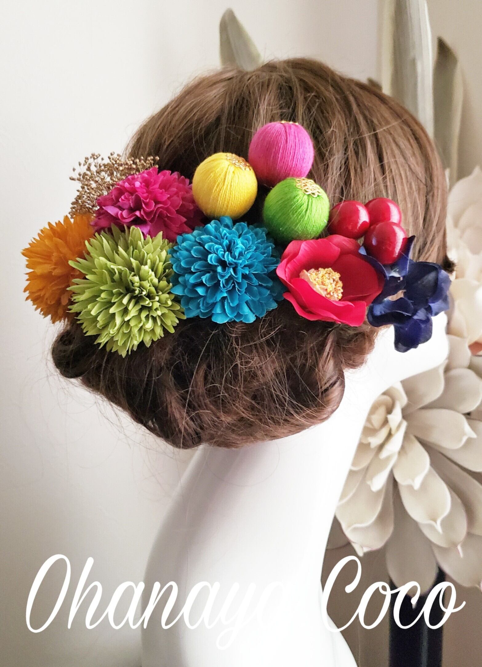 和モダンCute-カラフルマムと和ponボールの髪飾り11点Setです。