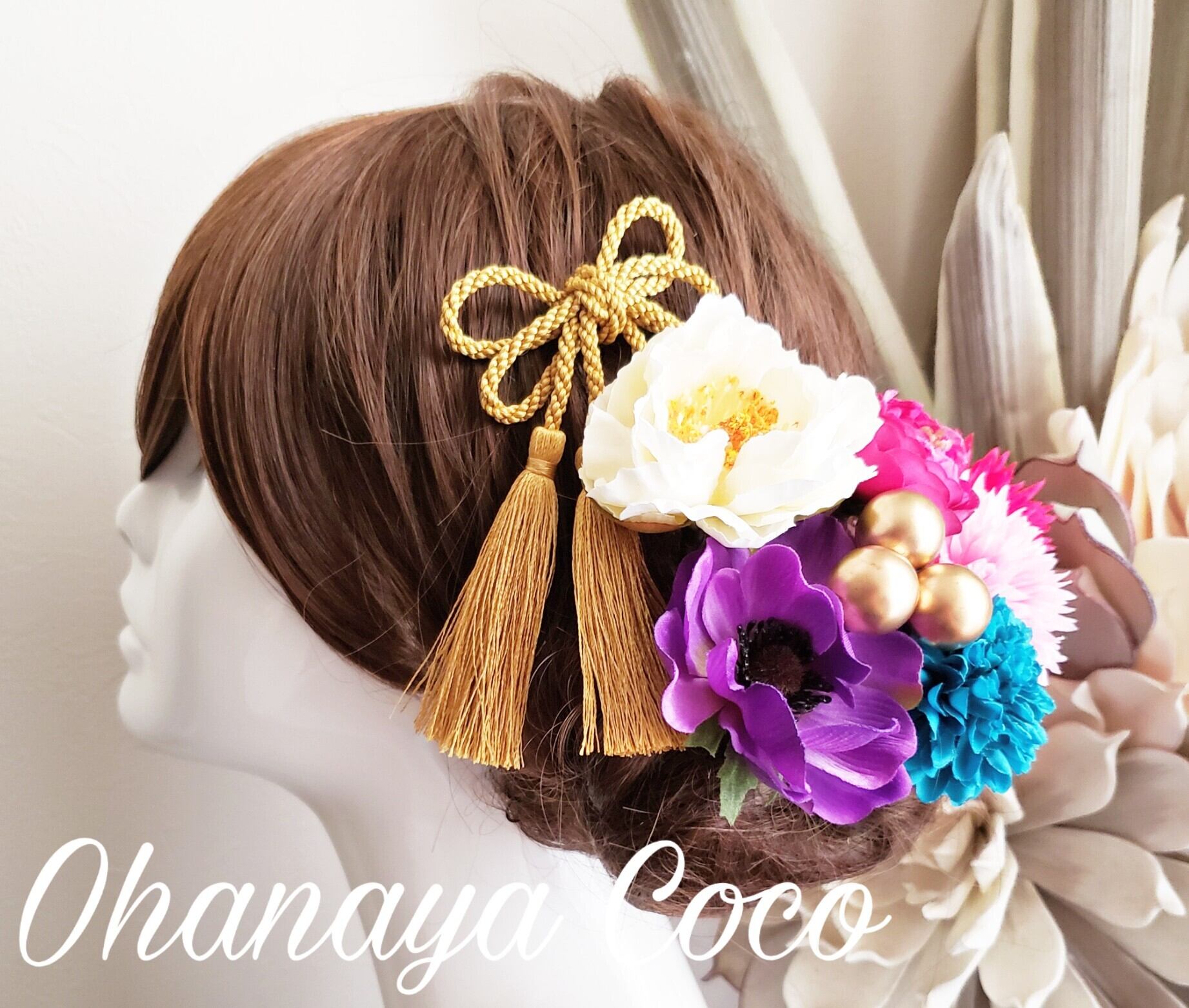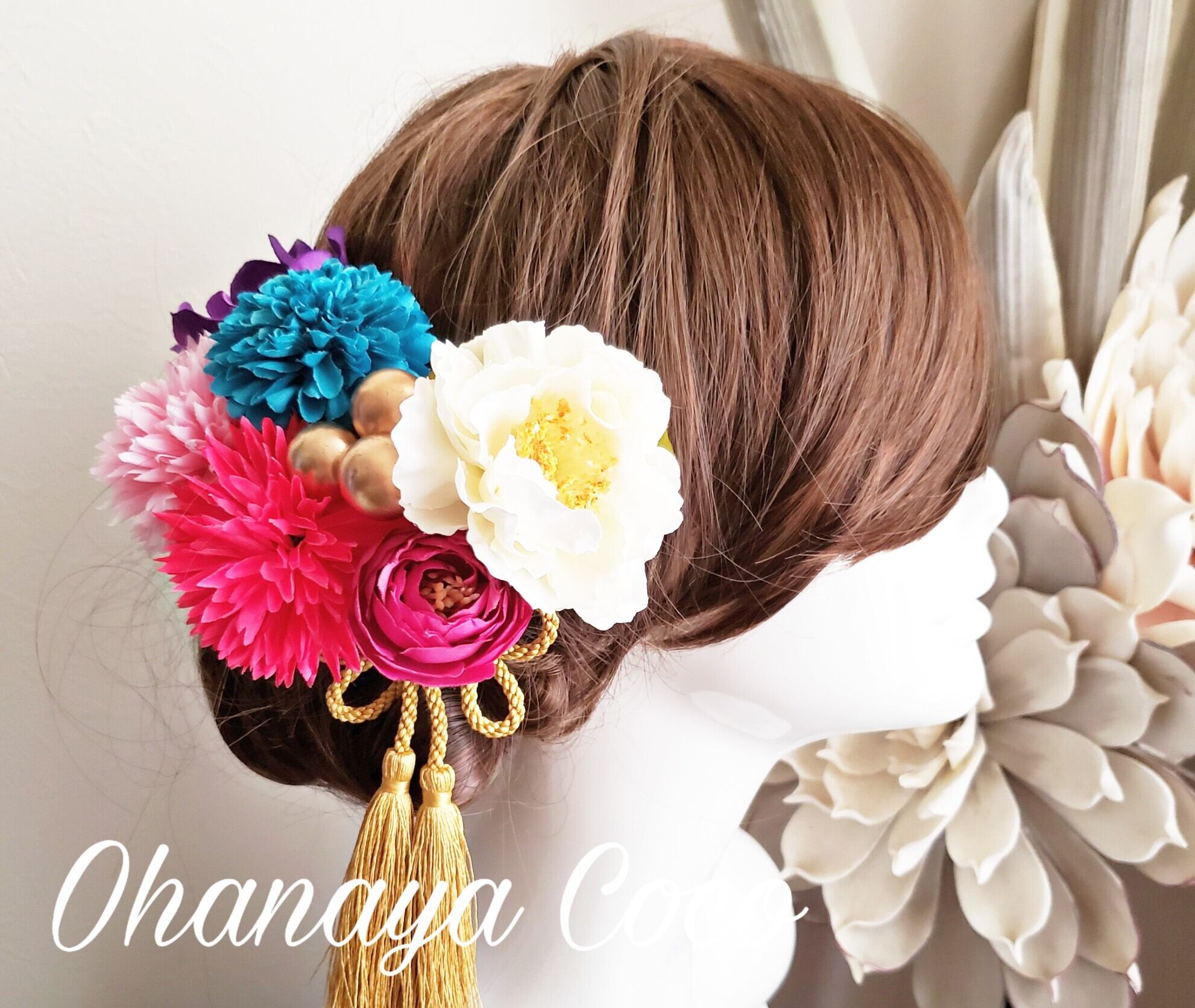 袴 振袖髪飾り 和モダン ピオニーとアネモネの髪飾り8点Set No700