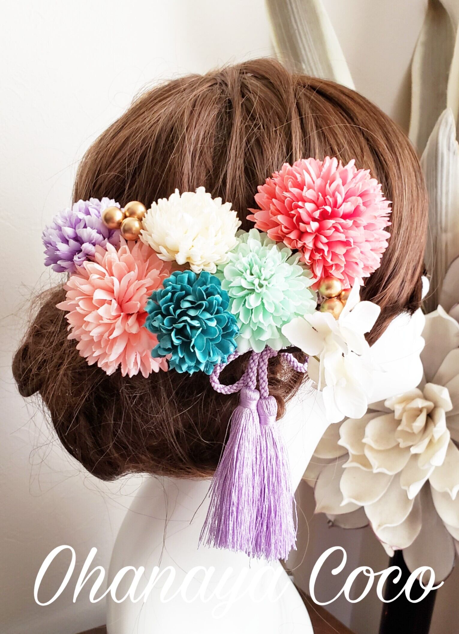 専用 速達発送 花funwari まんまるマムの髪飾り10点Set No701