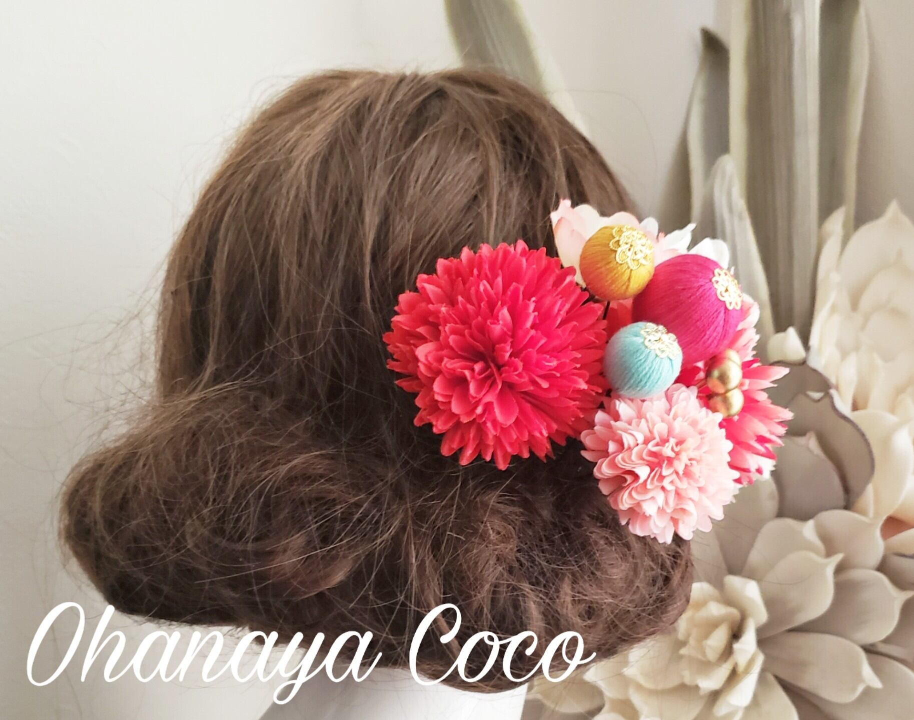 こちらの商品は花姫 桜とマムと和ponボールの髪飾り10点Setです。