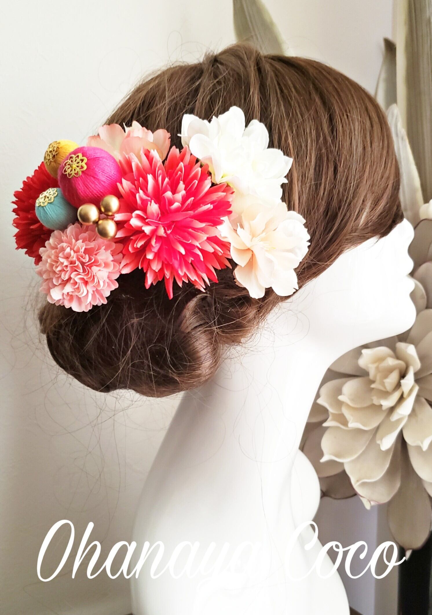 花姫 桜とマムと和ponボールの髪飾り10点Set No711 袴 成人式