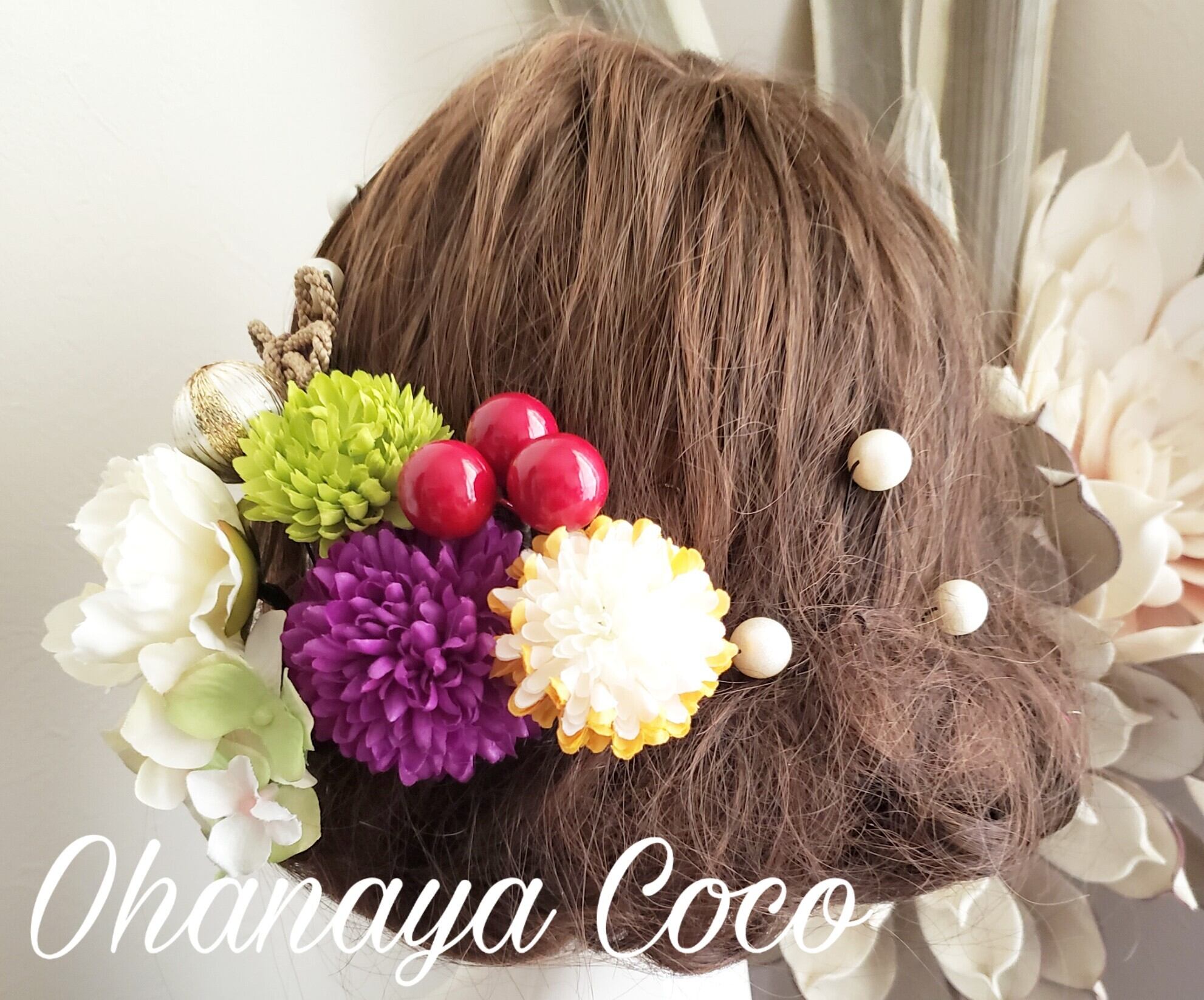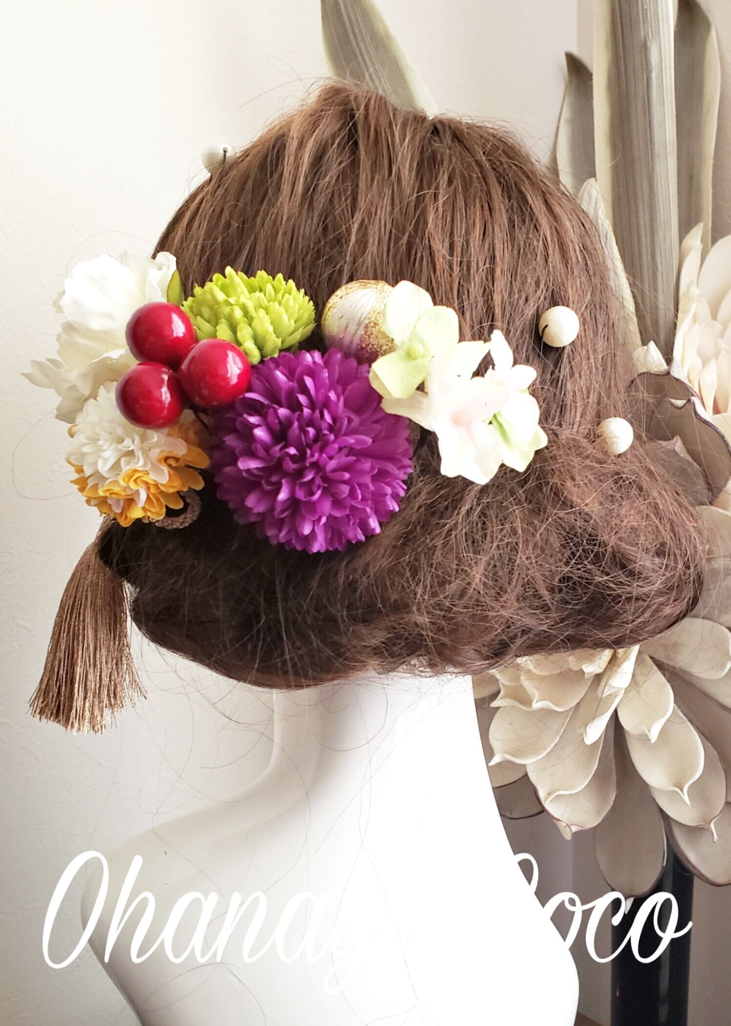 撮影角度などにより大きく見える場合もありますので実際の髪飾りの大きさは記載のサイズをご確認下さいませ。