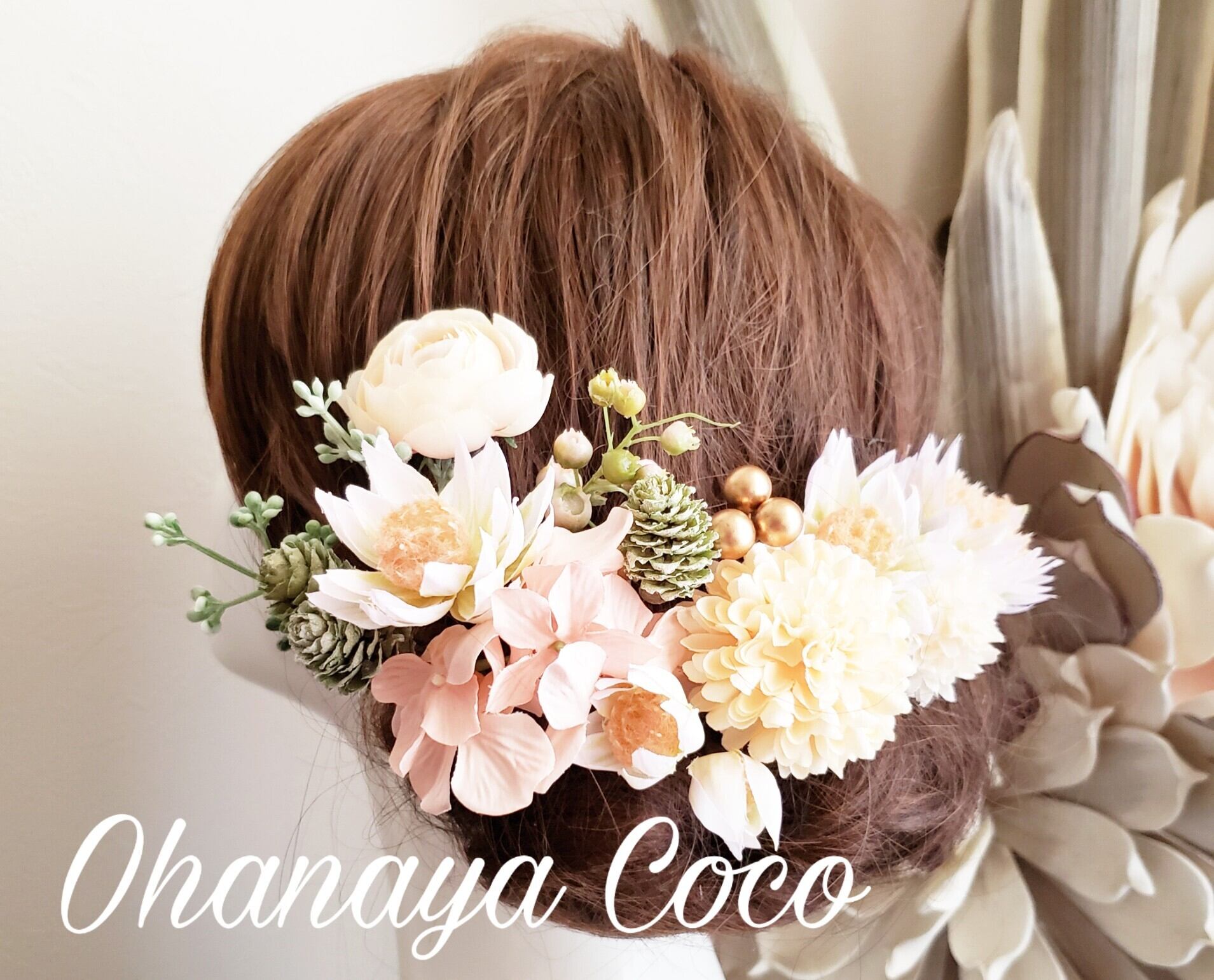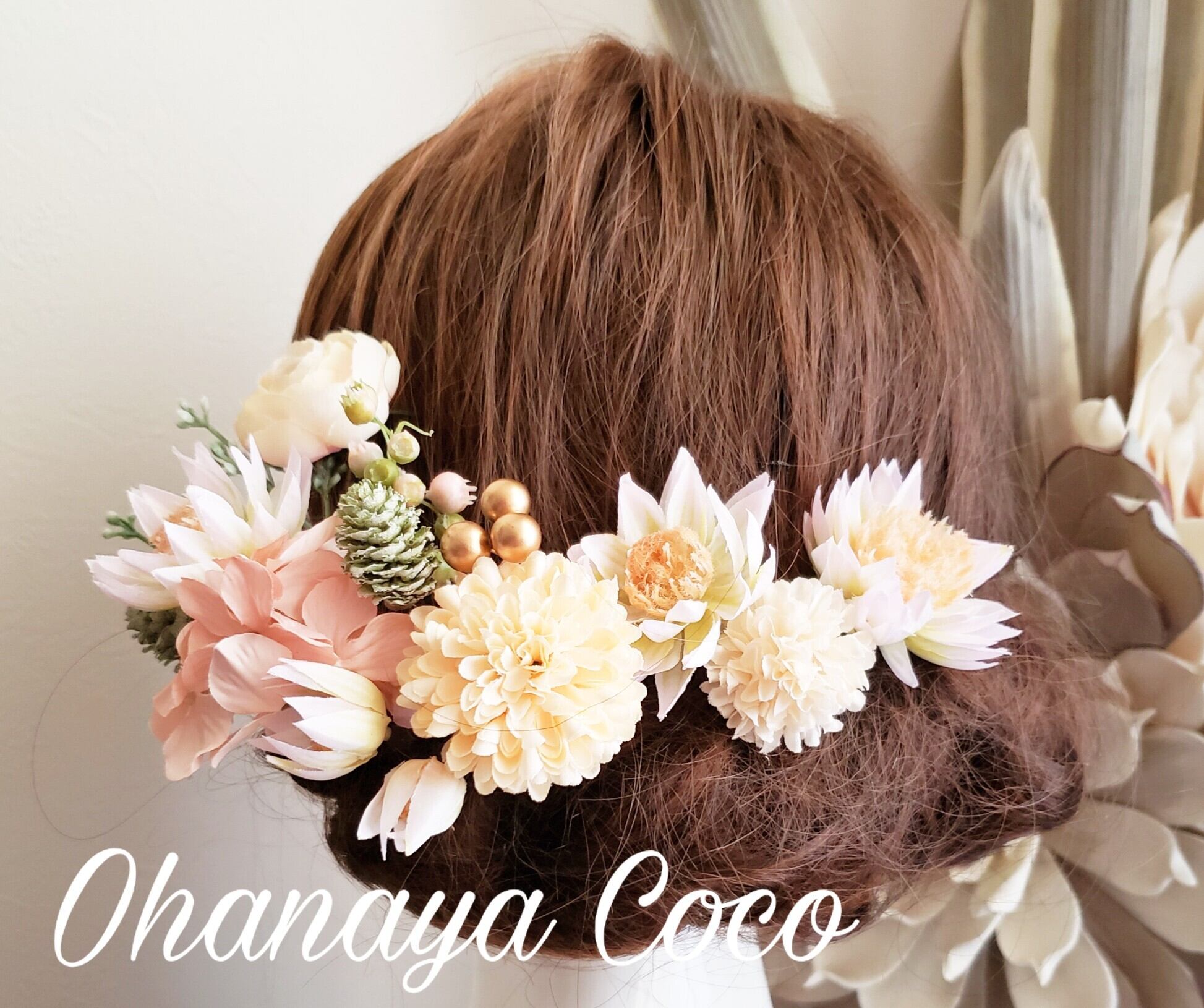 こちらの商品は花funwariくすみピンクとアイボリー系の髪飾り14点Setです。