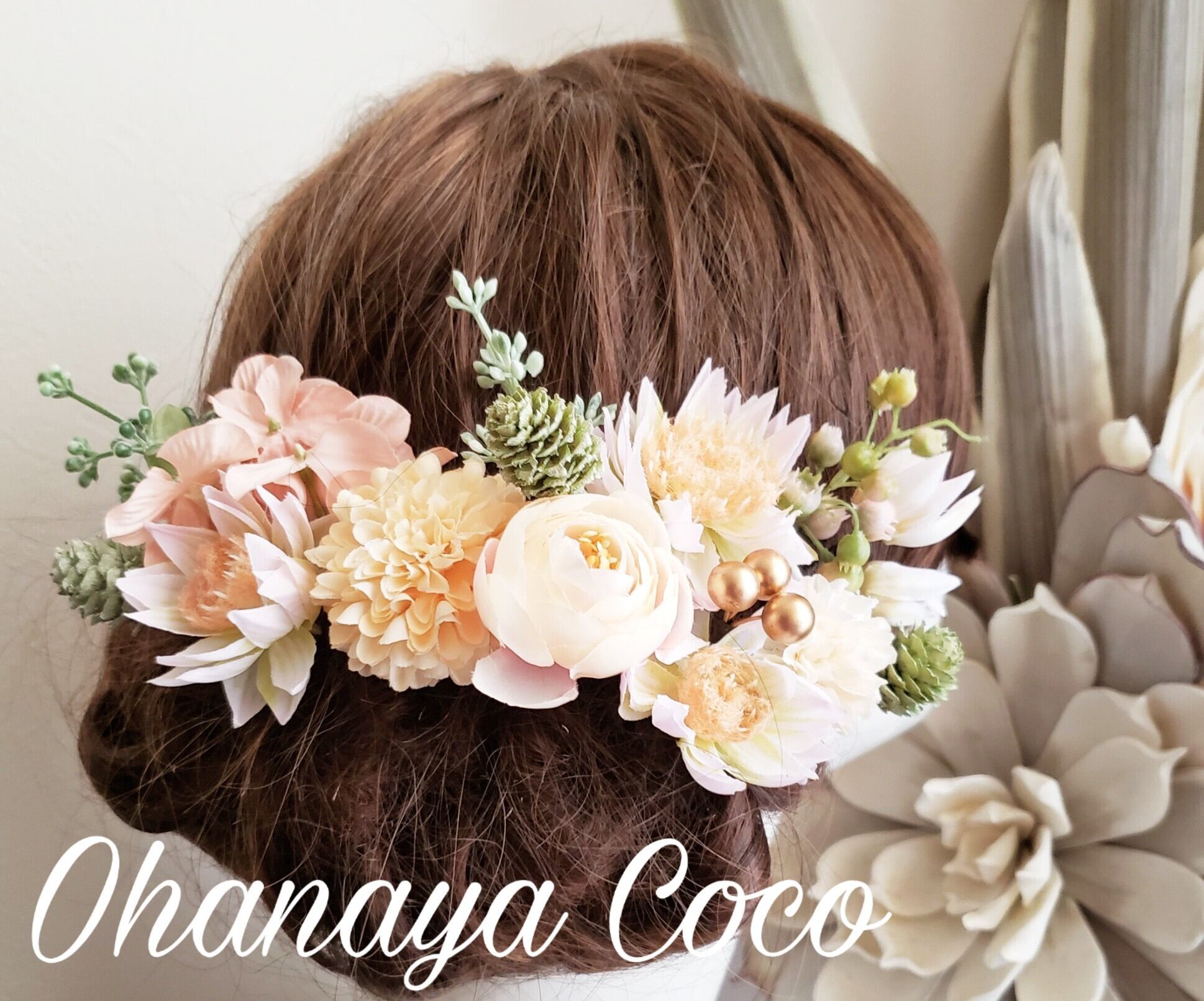 また、撮影角度などにより大きく見える場合もありますので実際の髪飾りの大きさは記載のサイズをご確認下さいませ。