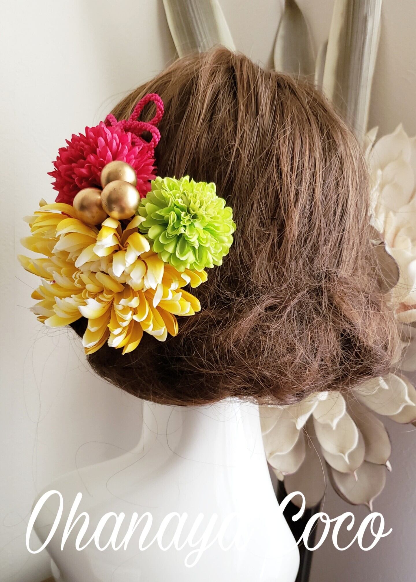 こちらの商品は華やか重ねキクとマムの髪飾り5点Setです。
