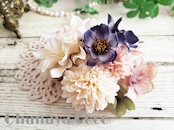 こちらの商品は上品なダリアと紺色コスモスのコサージュ2wayタイプです。
