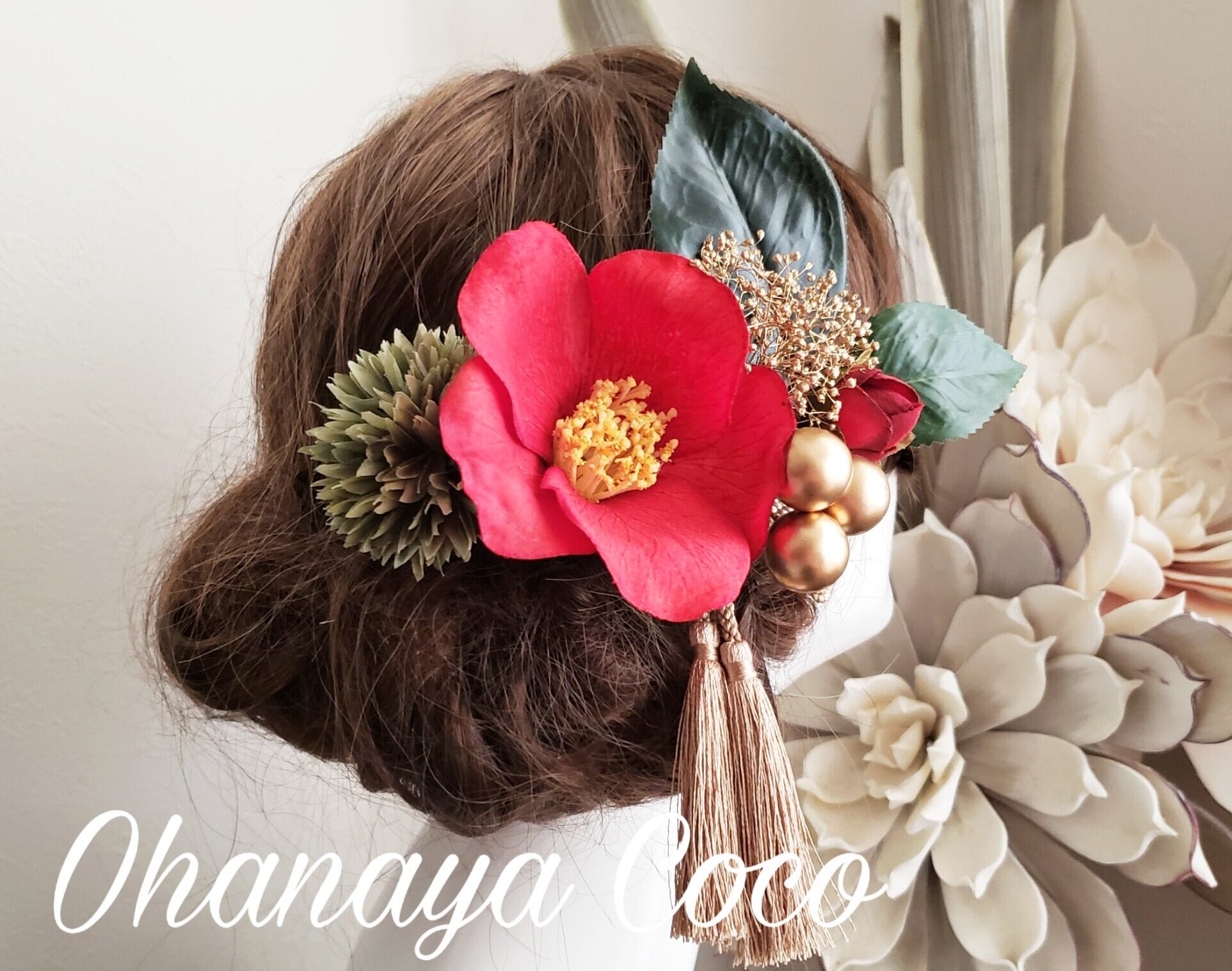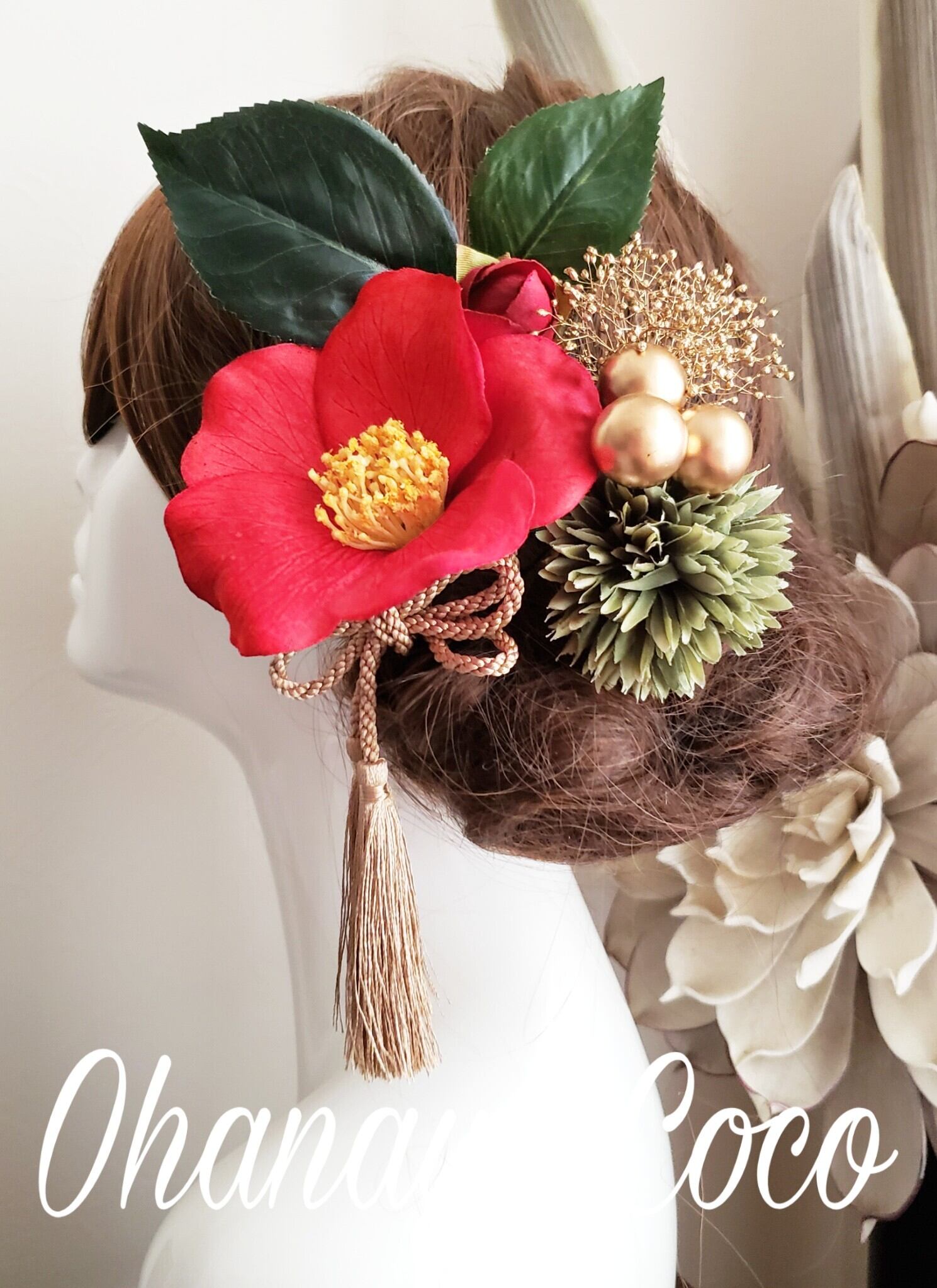 こちらの商品は花雅 大きな江戸椿とマムの和装髪飾り6点Setです。