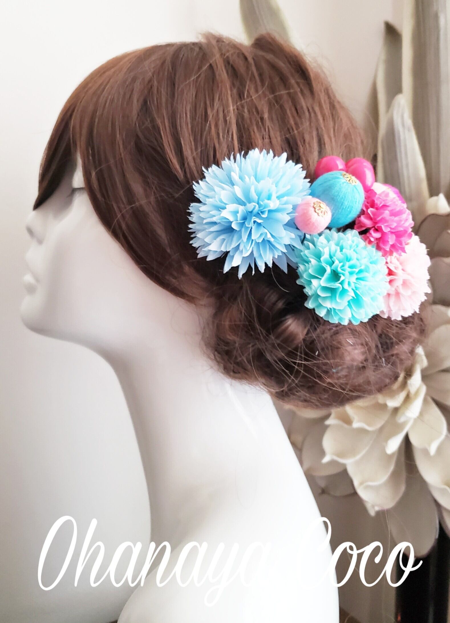 #和装 #造花 #成人式 #袴髪飾り #卒業式 #髪飾りオーダー #浴衣 #大人可愛い #和モダン #和風レトロ #シンプル #シンプル髪飾り #花火大会髪飾り#お祭りヘア #和装ウェディング #花嫁髪飾り #結納髪飾り #振袖髪飾り #ヘッドドレス #椿髪飾り #小さめ #糸ボール #カラフル