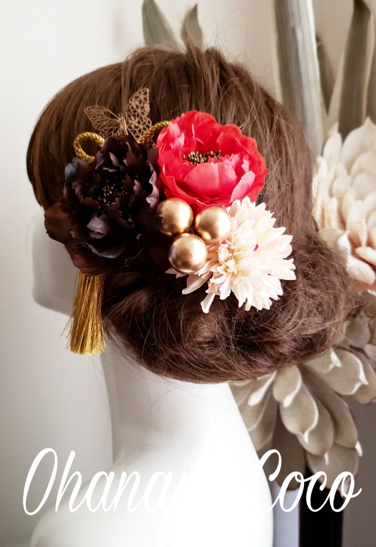 #色打掛 #白無垢 #振袖髪飾り #成人式 #大正ロマン #花嫁髪飾り#髪飾りオーダー #成人式 #卒業式 #花嫁髪飾り #和装小物 #着物小物 #和モダン #袴髪飾り #ウェディング #オレンジ髪飾り #ターコイズカラー