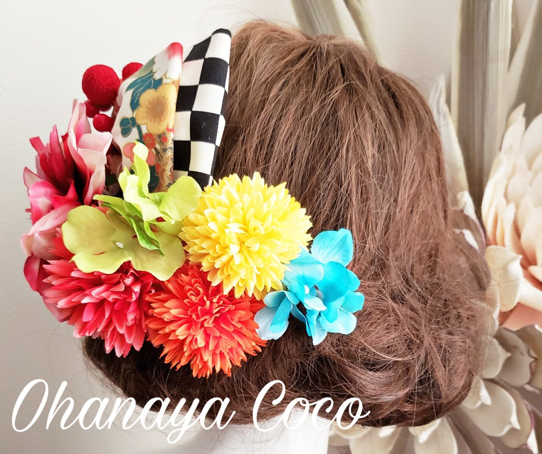 こちらの商品はグラデーションダリアと和柄リボンの髪飾り8点Setです。