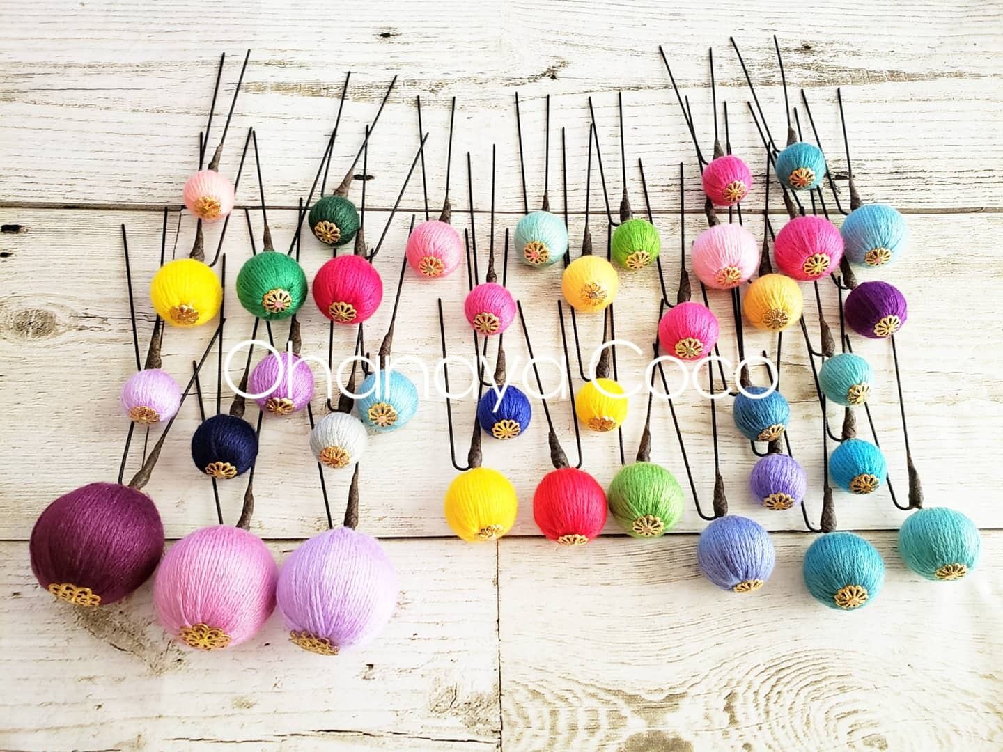 和玉ボールはカラフルな刺繍糸を丁寧に巻き付けて可愛いく仕上げました。