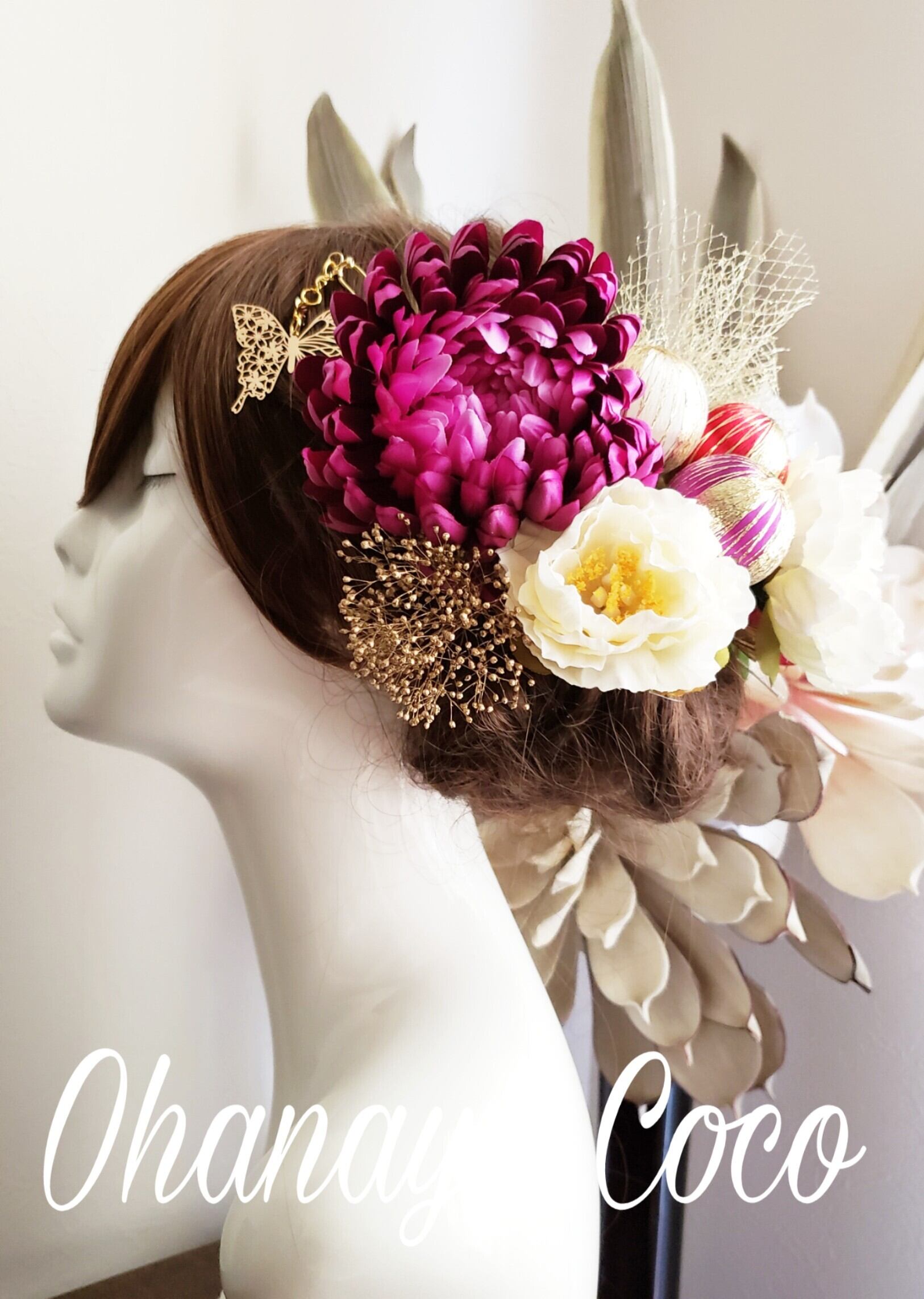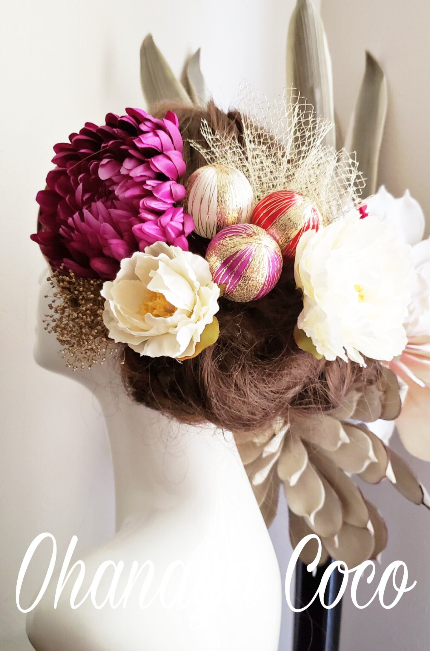 #和装 #造花 #白無垢 #成人式 #袴 #大正ロマン #髪飾りオーダー #キュート #和モダン #和風レトロ #タッセル #袴髪飾り #和装小物