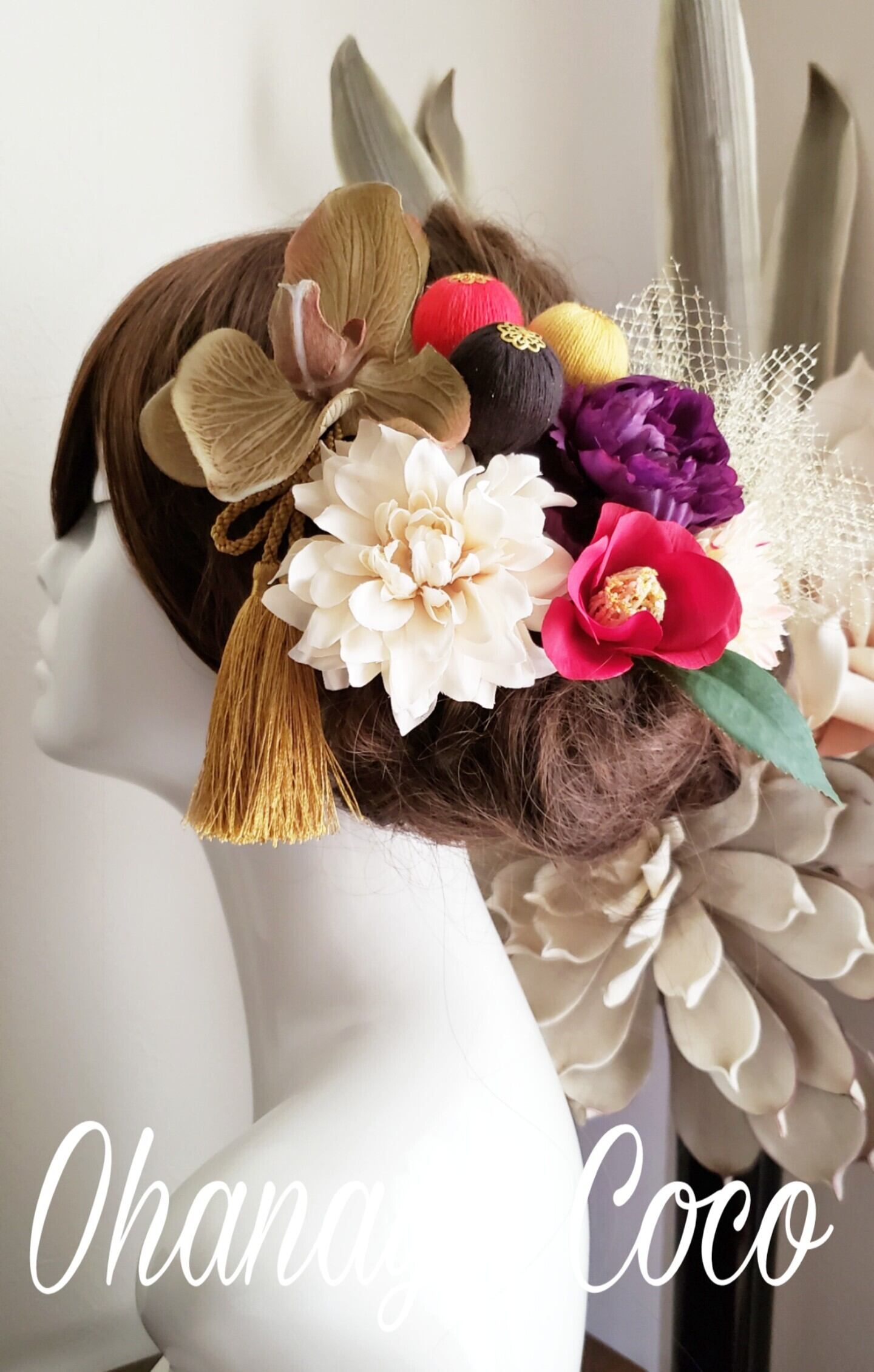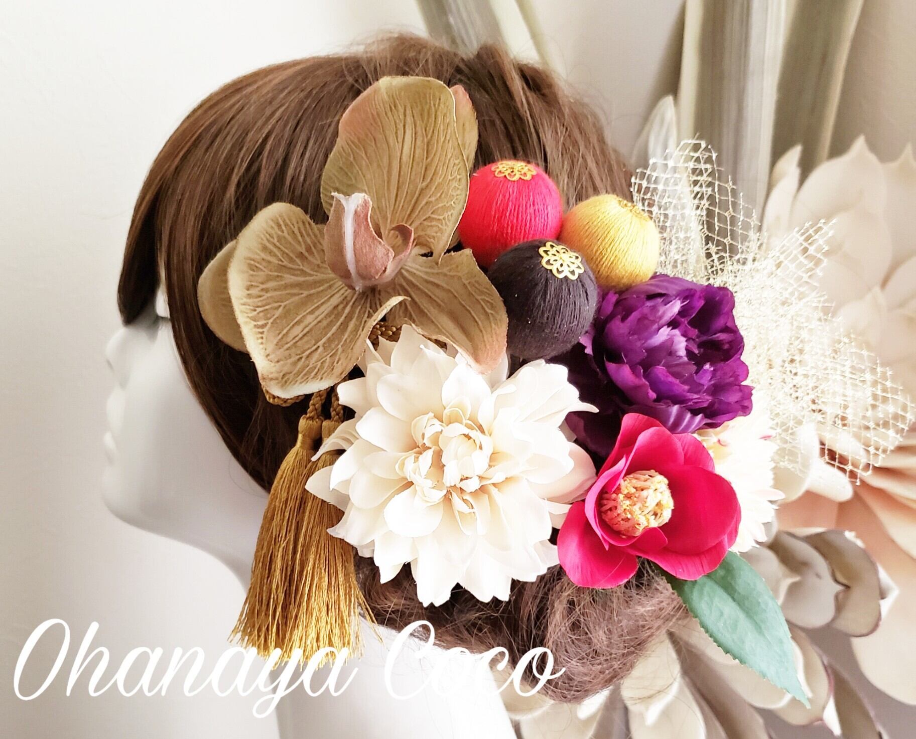 #和装 #造花 #白無垢 #成人式 #袴 #大正ロマン #髪飾りオーダー #キュート #和モダン #和風レトロ #タッセル #袴髪飾り #和装小物