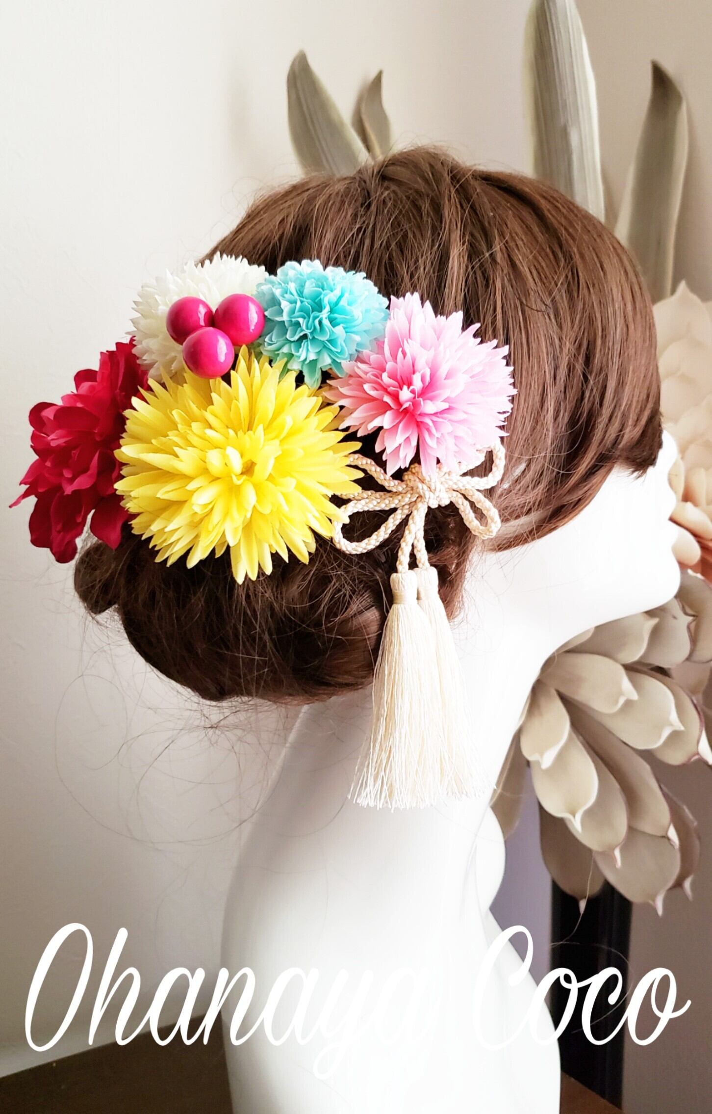 #和装 #造花 #白無垢 #成人式 #袴 #大正ロマン #髪飾りオーダー #キュート #和モダン #和風レトロ #タッセル #袴髪飾り #和装小物