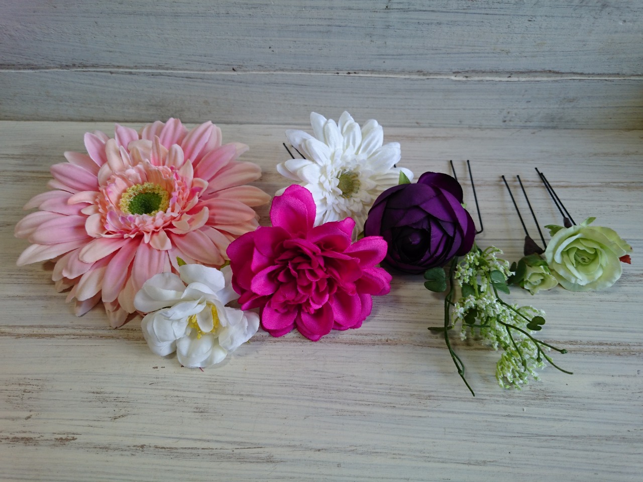 ガーベラと小花の髪飾り8点セット No0001 *Ohanaya Coco*