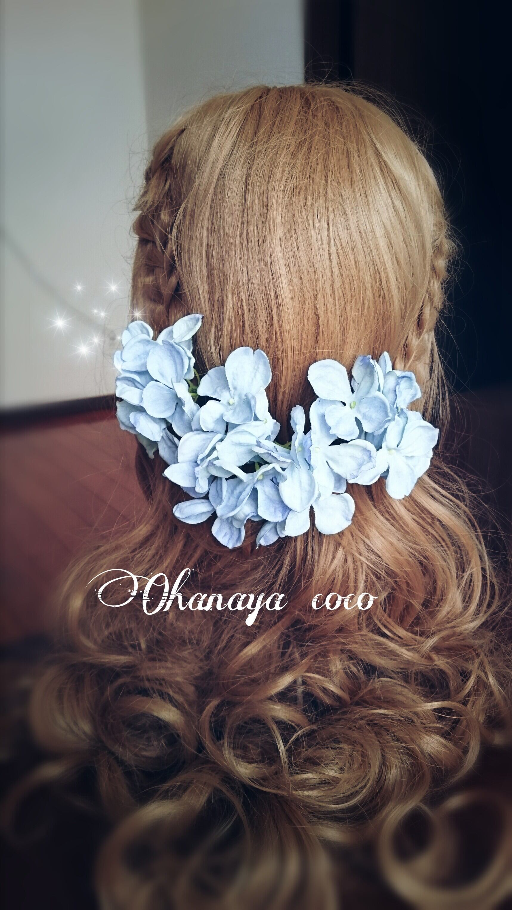 funwari 紫陽花の髪飾りパステルブルー3点セット No0028