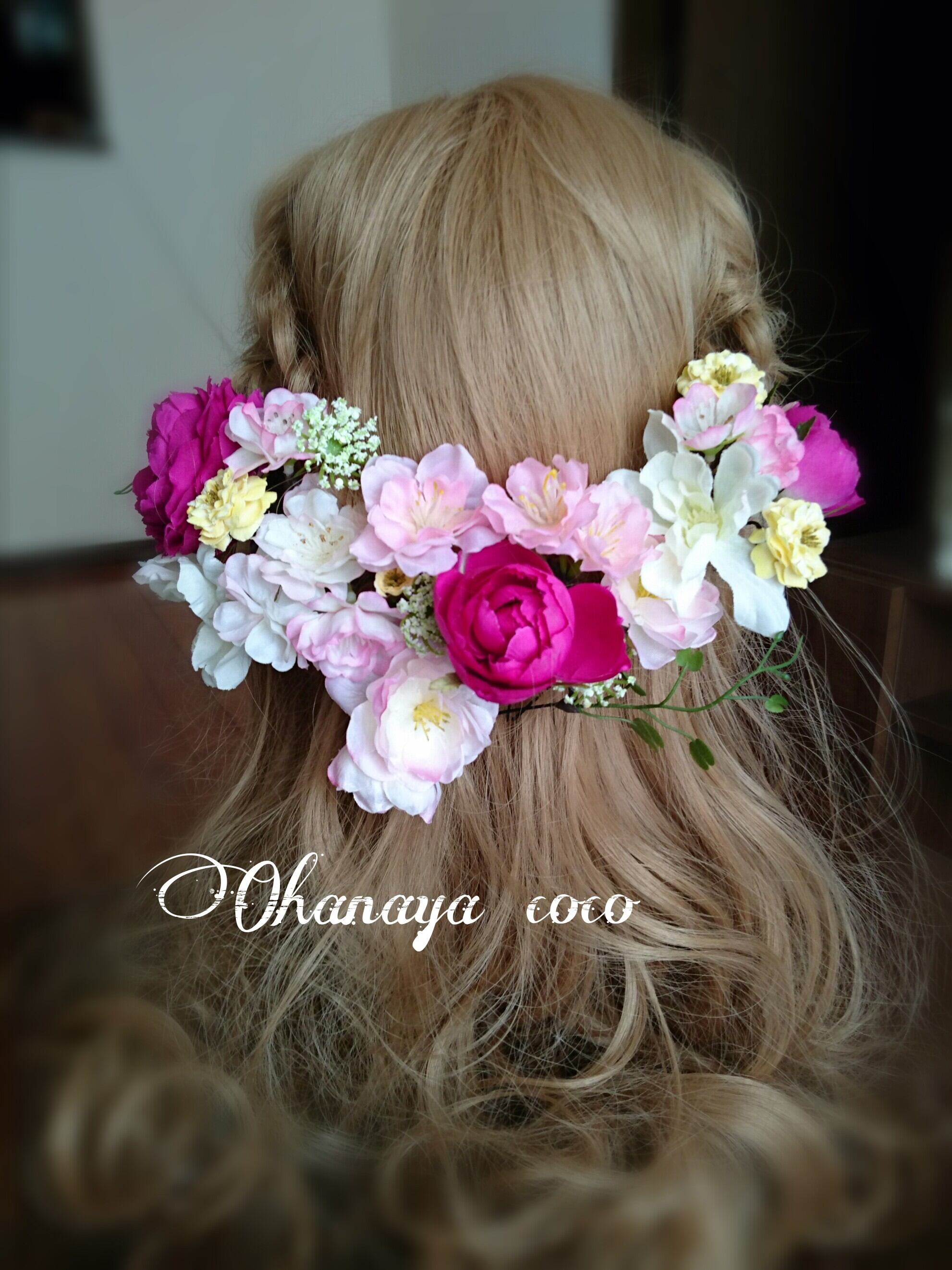 お花ひとつひとつにUピンが付いていますので様々な配置でアレンジしていた