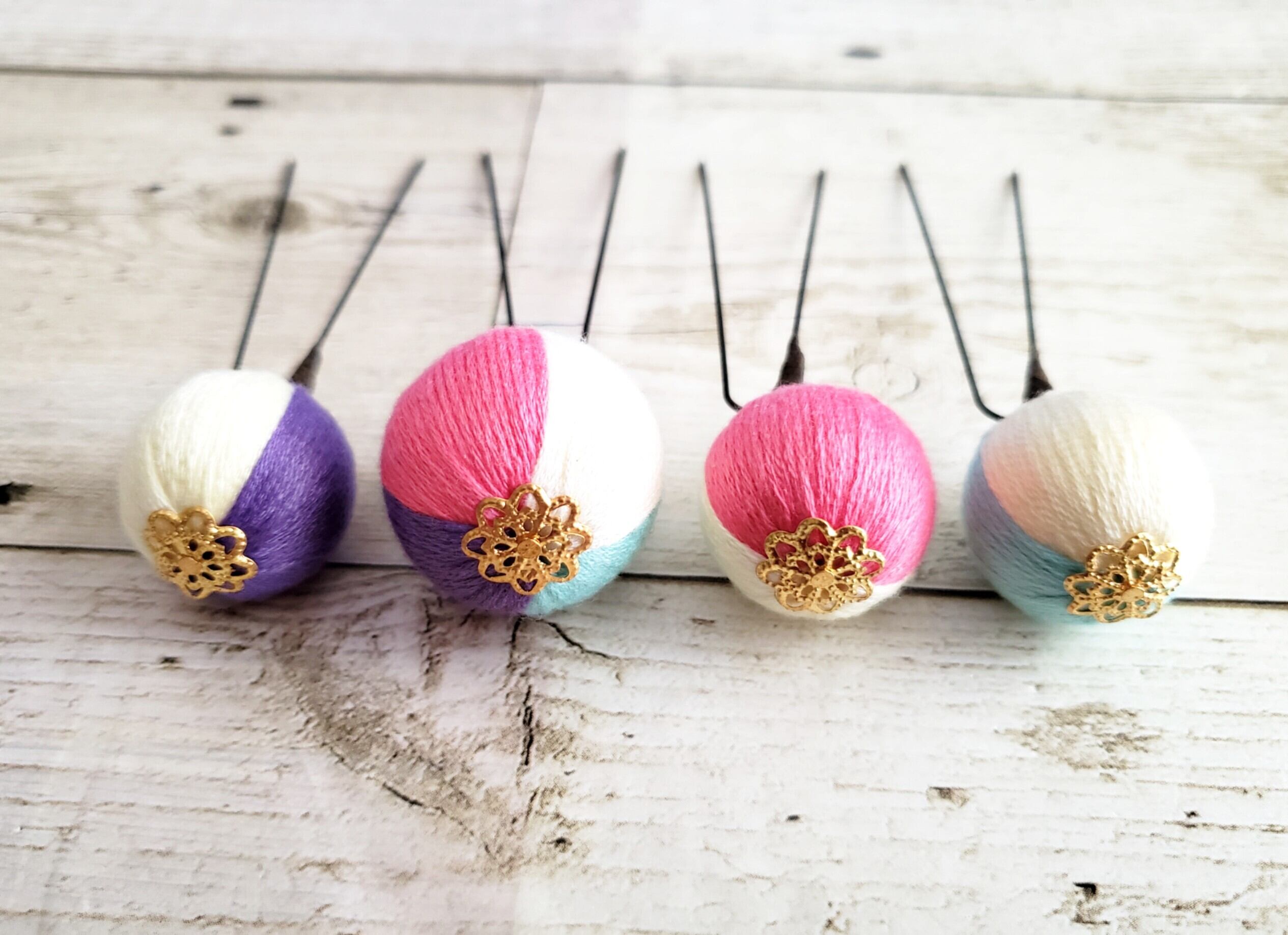 和玉ボール4本Set 4色のキュートなEタイプ① 髪飾り 成人式 袴 振袖