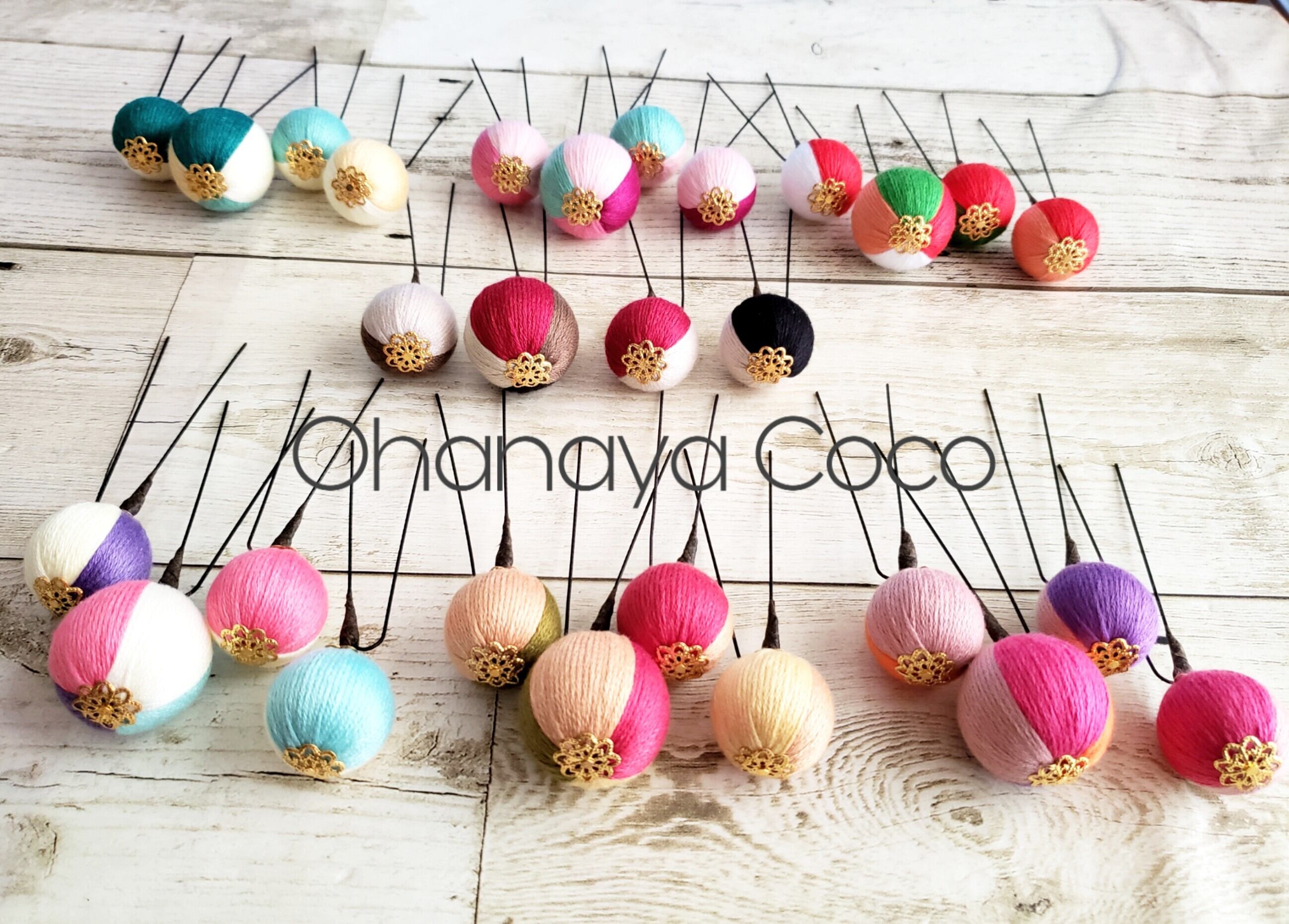 和玉ボールはカラフルな刺繍糸を丁寧に巻き付けて可愛いく仕上げました。